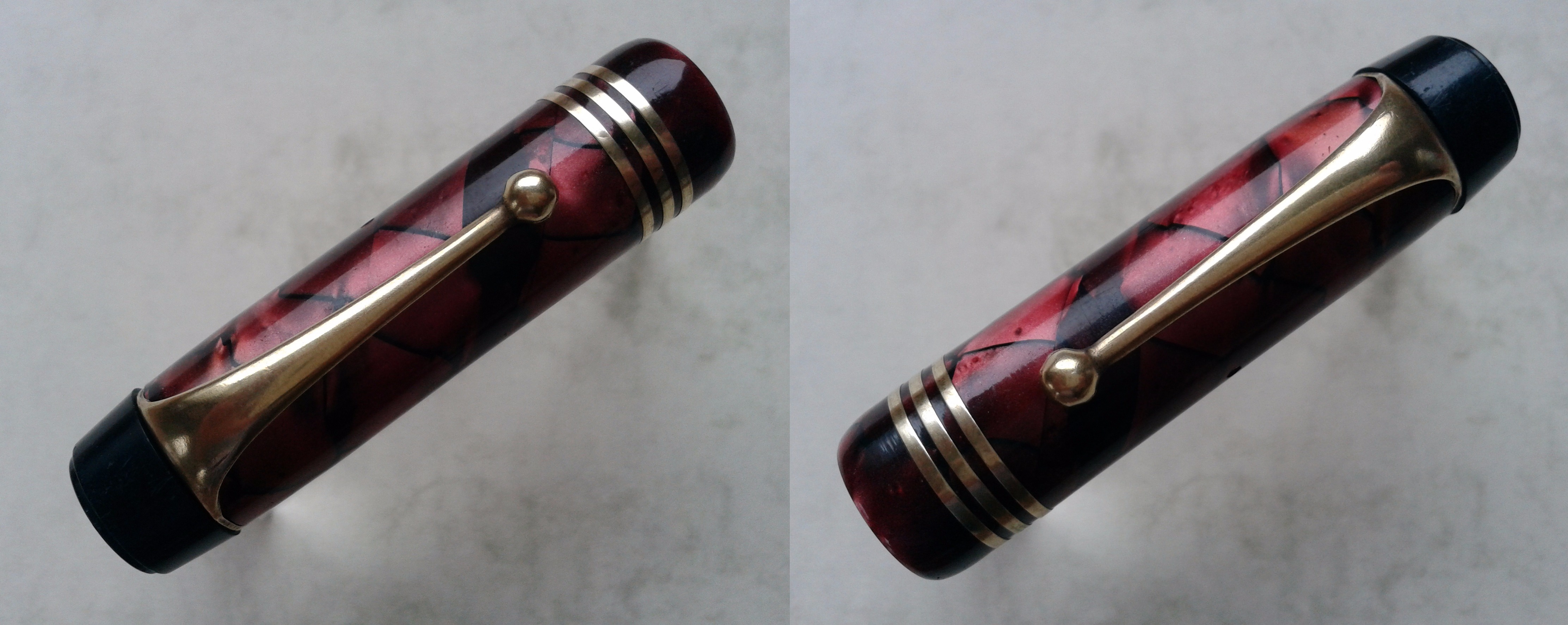Il cappuccio è perfettamente cilindrico, ma già mostra una testina streamlined: in celluloide nera, di forma tronco conica, termina con un piccolo scalino che conduce ad una sommità impercettibilmente rastremata a cono.