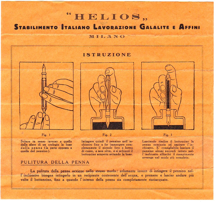 Bellissima, anche e come al solito, la parte iconografica. La penna sembra appena uscita dalla fabbrica milanese Helios, per me fino a poco fa sconosciuta: chissà che lavoro per riportare la penna a nuovo!