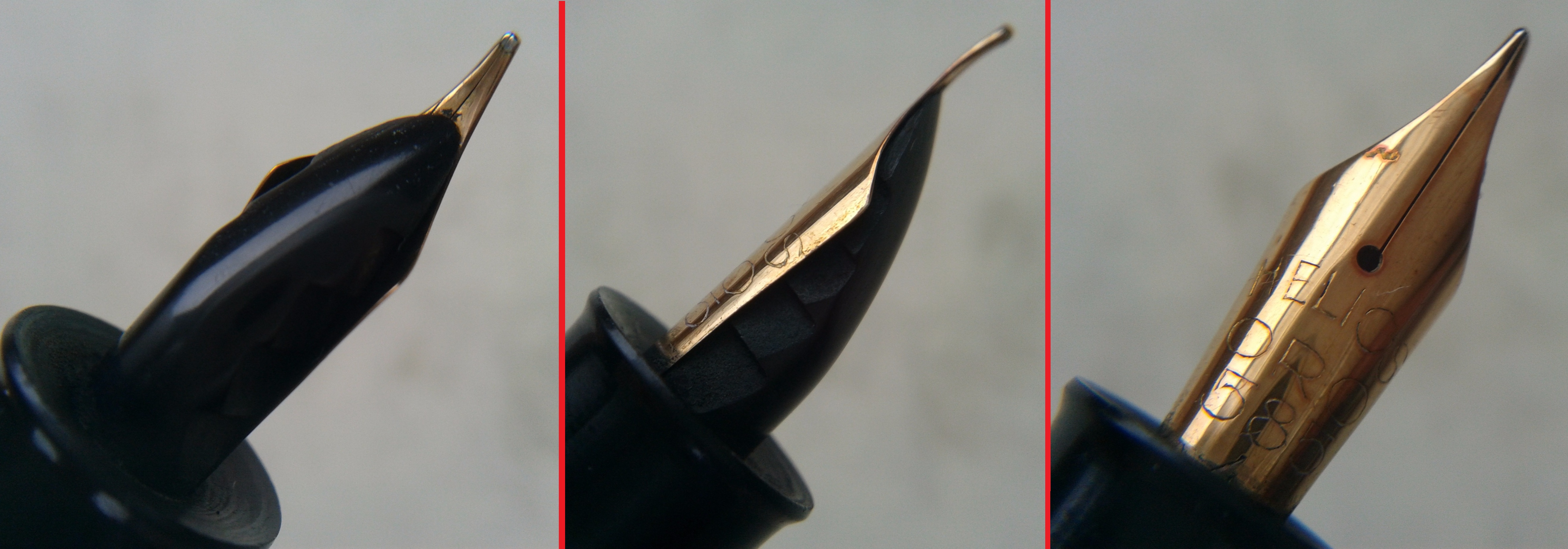 Il pennino, montato su un alimentatore in ebanite del tipo ad “albero di natale” (come nelle Parker Duofold),