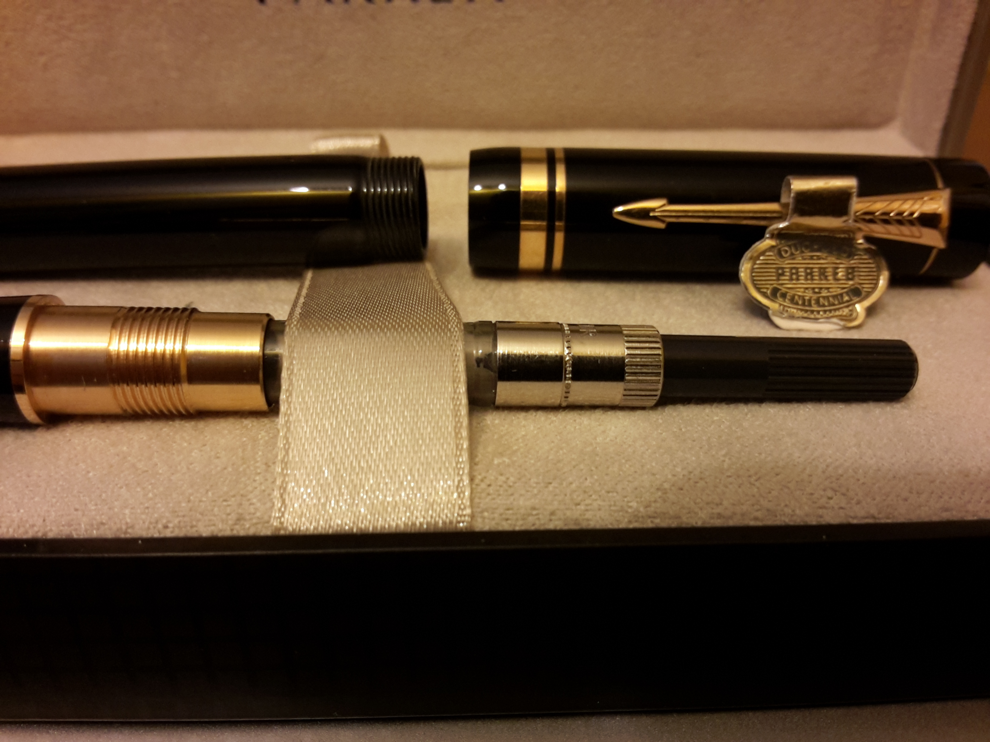 Oggi ho iniziato ufficialmente la mia collezione di stilografiche con una Parker Duofold Centennial , interesse sempre un po' frenato ma oggi quando sono entrato in negozio ed il commesso mi ha iniziato a far vedere e toccare questi gioielli ho deciso che sono un buon toccasana per l'animo.