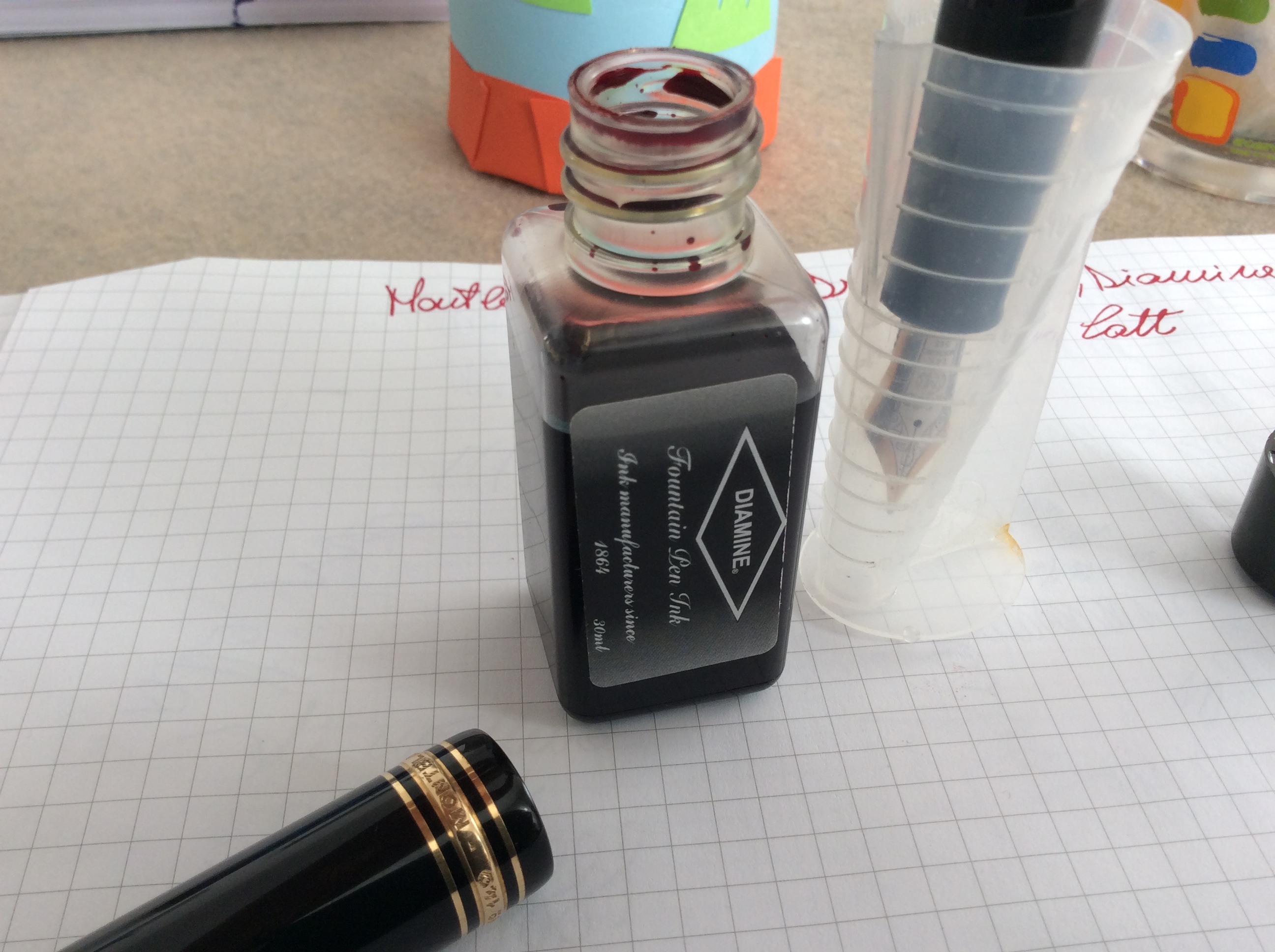 Ho sempre avuto problemi nella ricarica ad esempio delle Montblanc 149 con i boccettini Diamine da 30 ml. Ho avuto l' idea di usare un misurino che spesso si trova in coppia con vari insetticidi, ha anche una scala graduata in ml. così da avere anche l' idea di quanto inchiostro si stia caricando. Finalmente posso caricare tranquillamente tutte le penne dalla sezione grossa che non entravano nei Diamine!