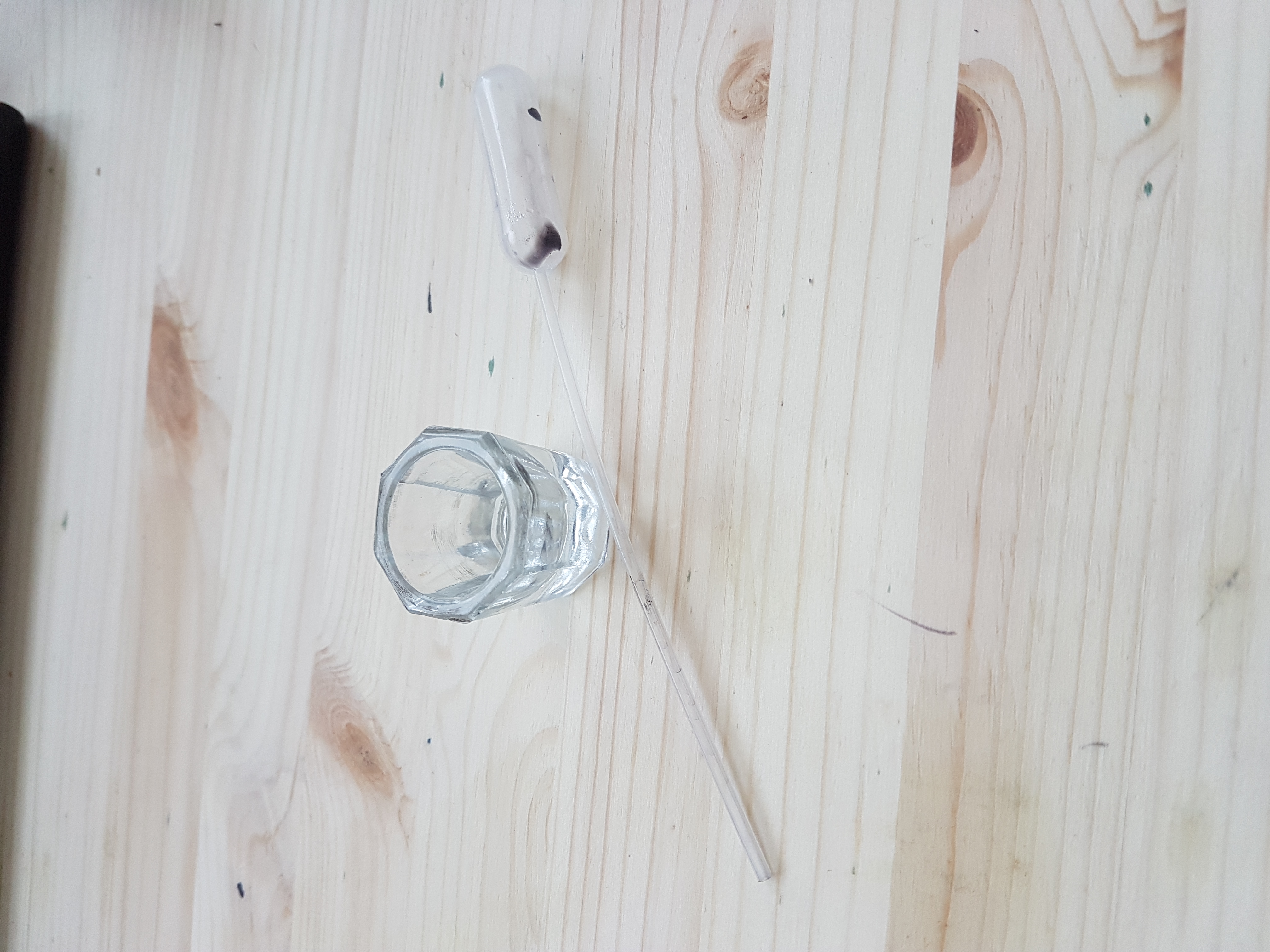 Conviene dunque che ti procuri due attrezzi come quelli in foto. La pipetta puoi usarla per travasare l'inchiostro nel contenitore da inzuppo e prima ancora per mescolare l'inchiostro nel calamaio. L'inchiostro inutilizzato a fine sessione va eliminato ovviamente.