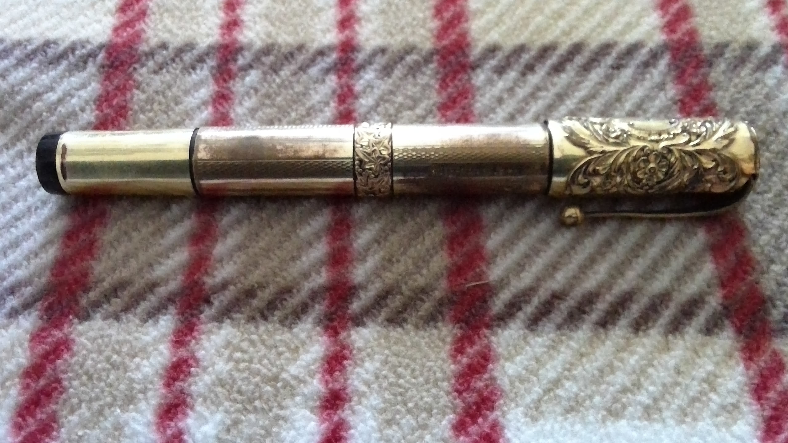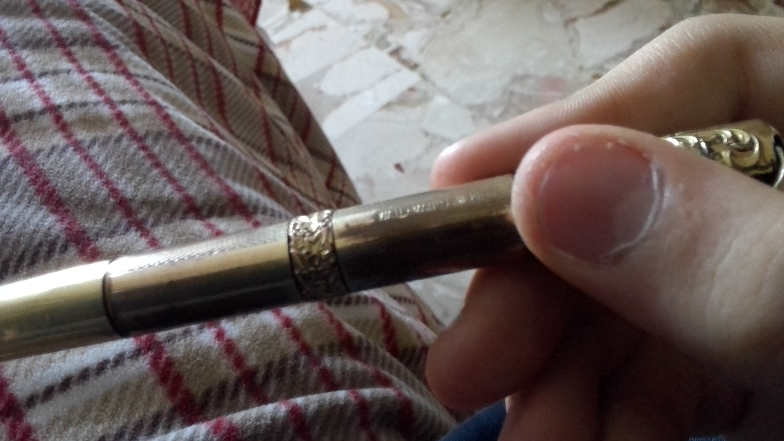 volevo chiedervi che modello di penna fosse questa e come si ricarica, data l'assenza sia del pistone che della sede per le cartucce. Probabilmente è dell'epoca Liberty. Il pennino fuoriesce dall'interno della penna ruotando un anello sul fondo. Sicuramente è Waterman. Mi era balenata l'idea che, essendo una penna degli anni '20-'30, potesse essere caricata con il contagocce inserendo l'inchiostro direttamente nel blocco pennino-alimentatore.