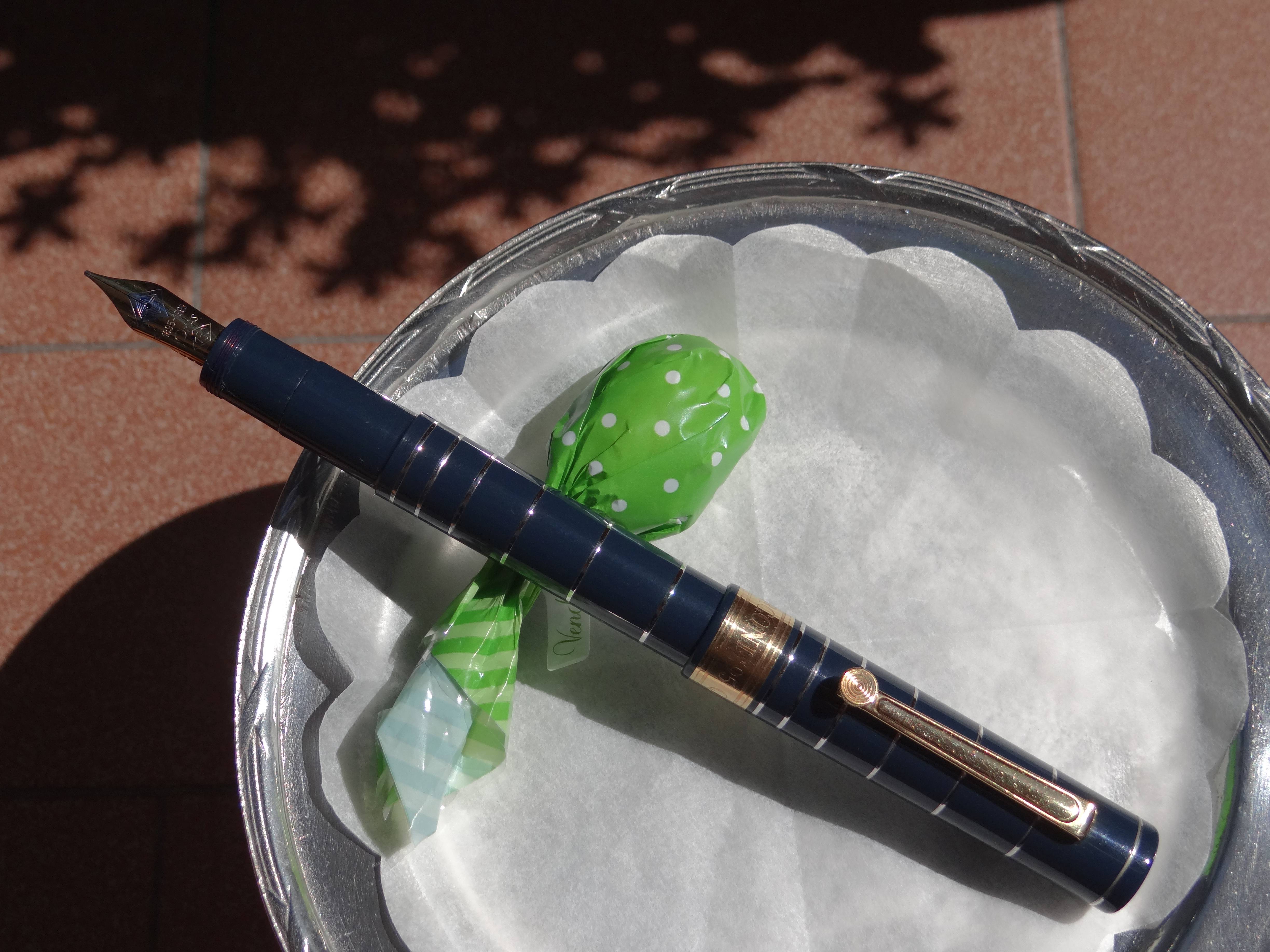 Fra le rimanenze, però, mi aveva incuriosito una strana Omas blu, custodita in un cofanetto di legno.