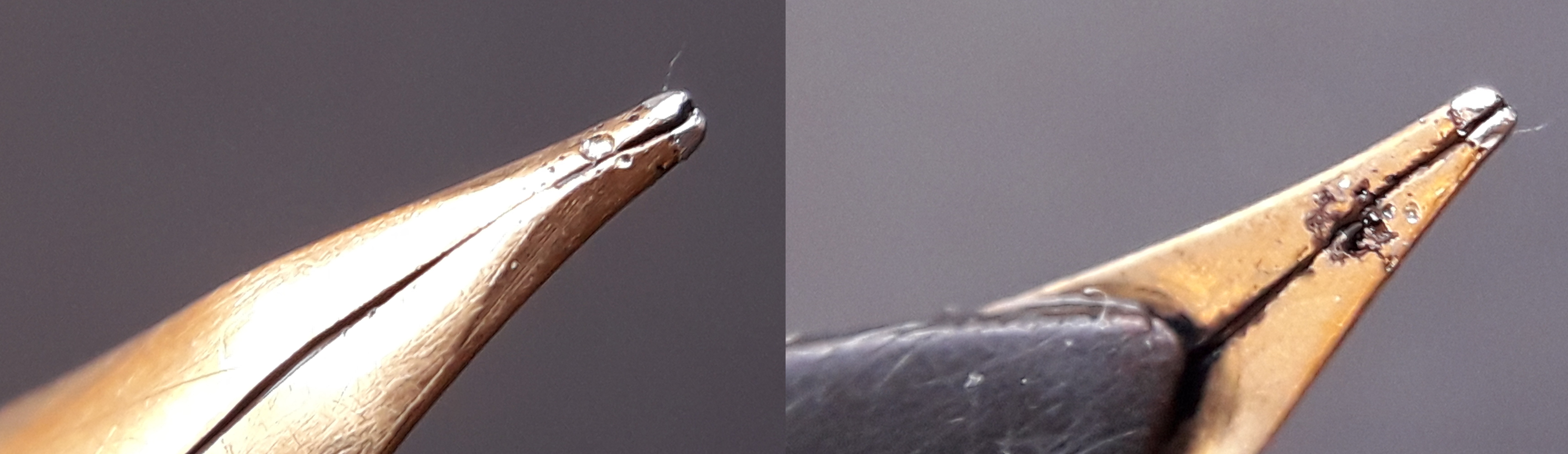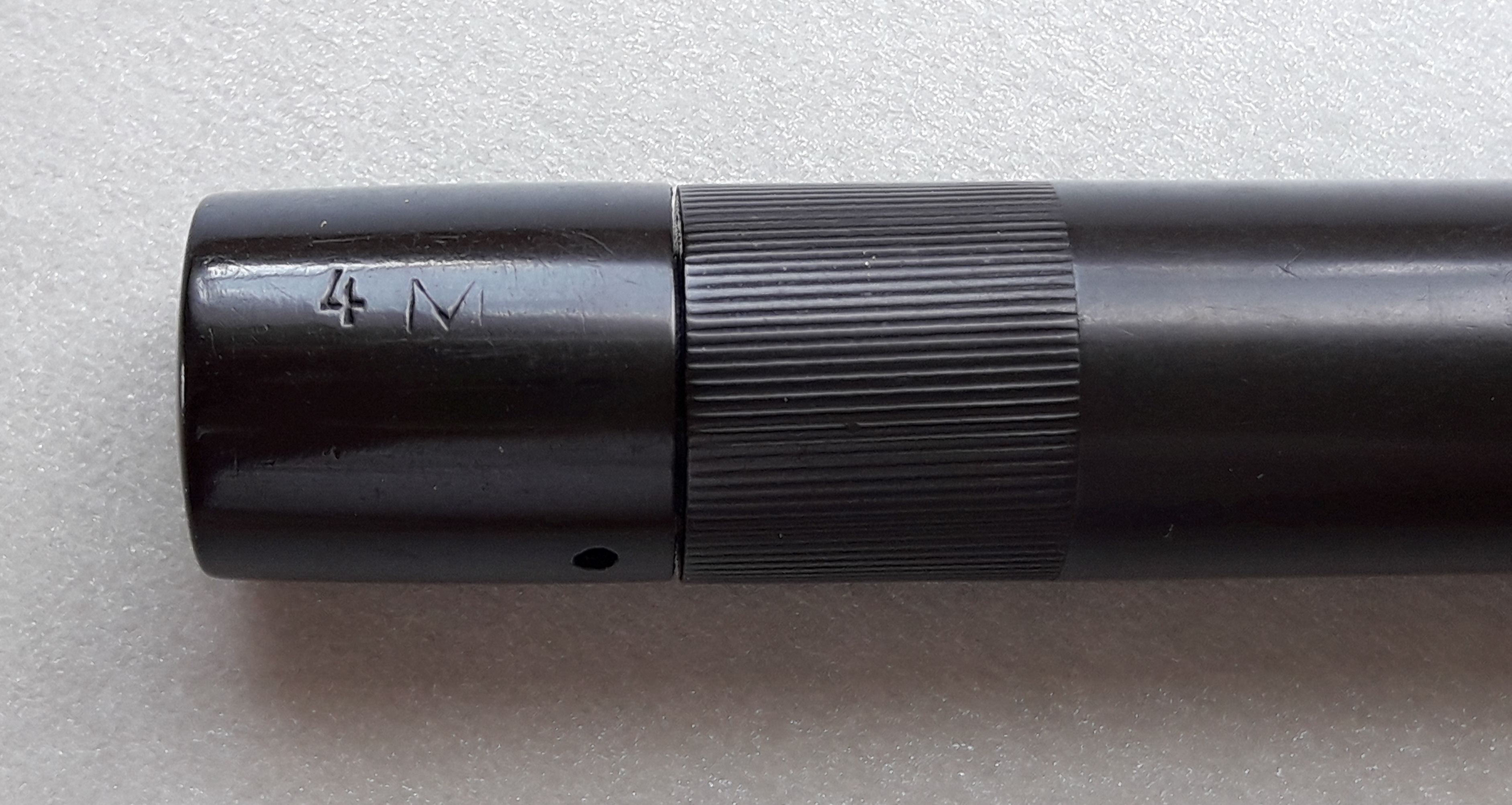 Mmmm… Quando c’è la scanalatura sull’alimentatore, ci deve essere anche lo spillo d’argento all’interno del cappuccio, solidale alla testina svitabile, ma qui all’interno non lo vedo: se lo sono rubato…