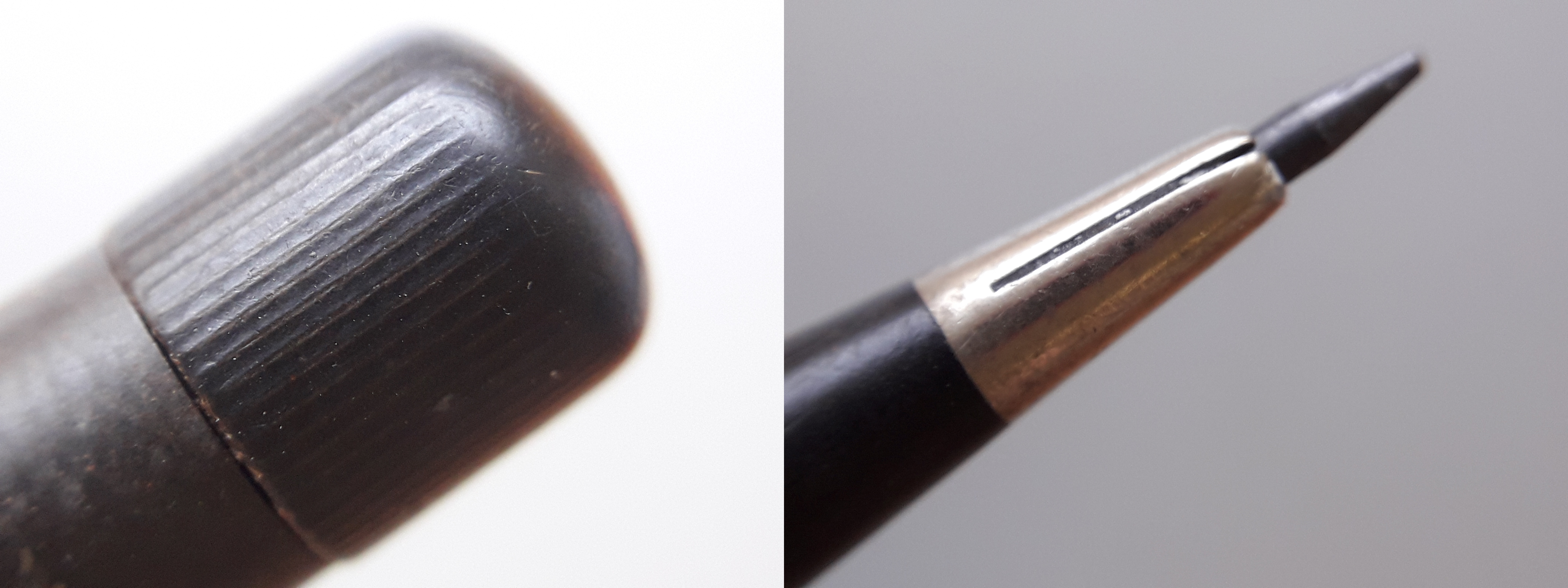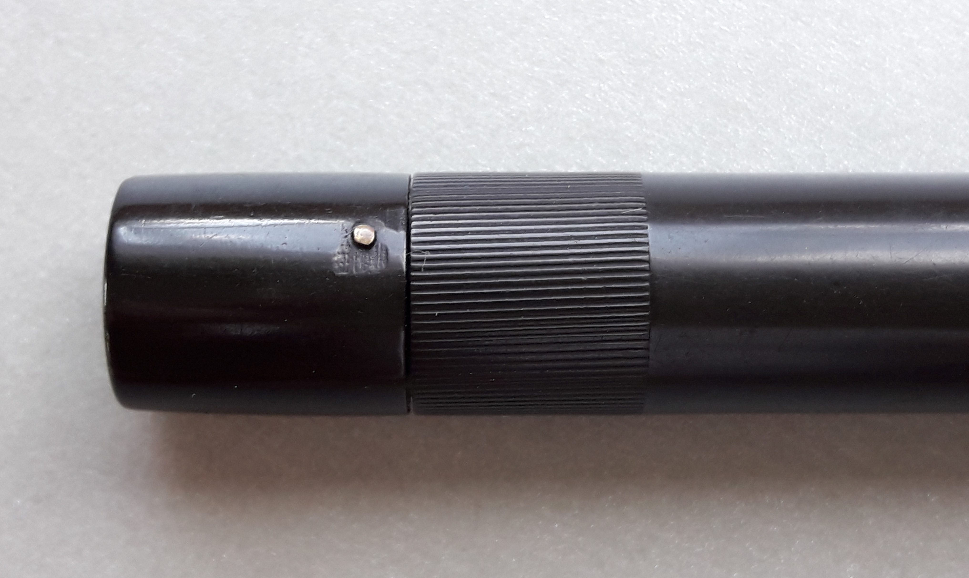 Mmmm… Quando c’è la scanalatura sull’alimentatore, ci deve essere anche lo spillo d’argento all’interno del cappuccio, solidale alla testina svitabile, ma qui all’interno non lo vedo: se lo sono rubato…