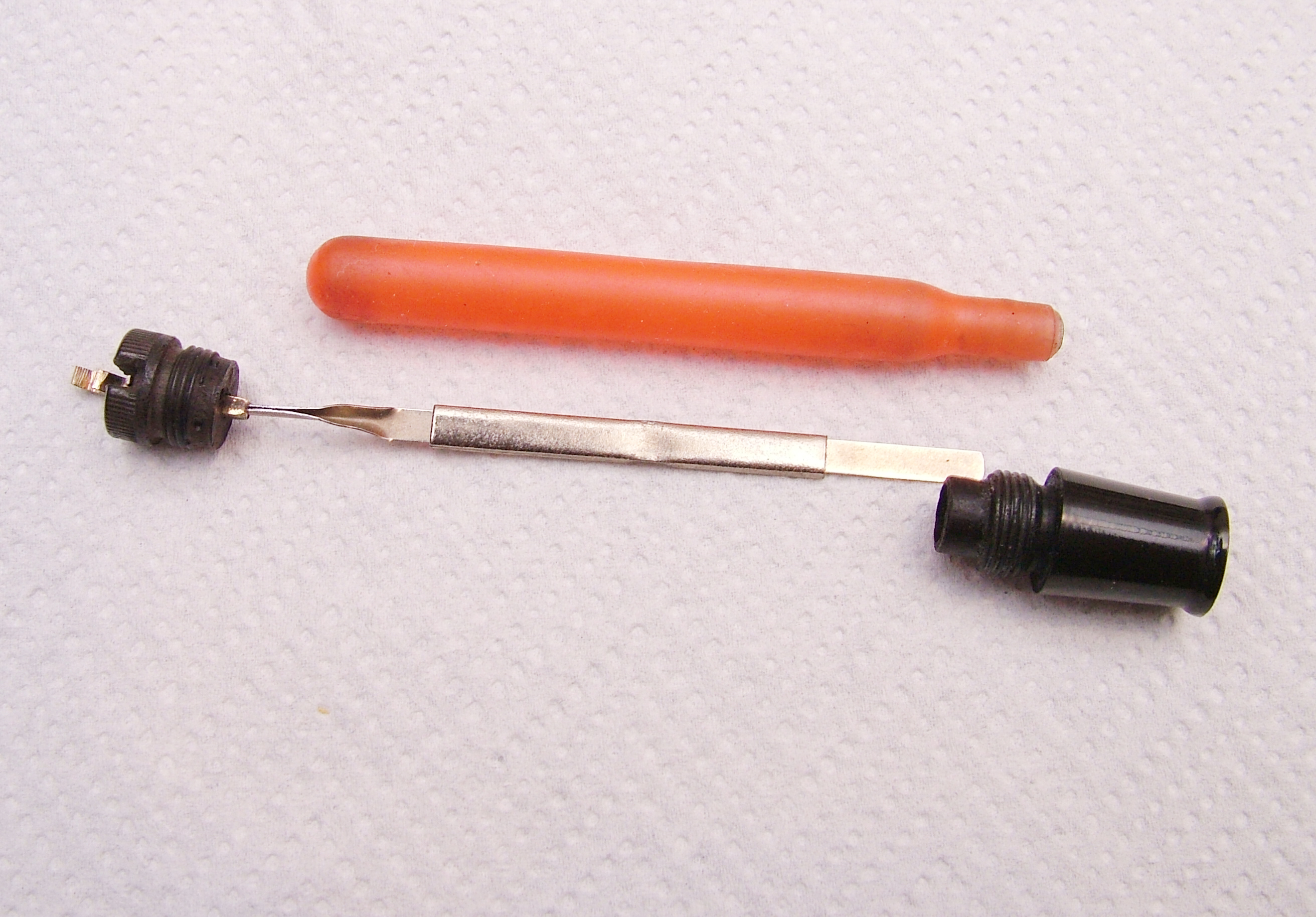 Nelle foto si vedranno i vari pezzi che la compongono, le prime sono del cappuccio, una nota, la filettatura sotto il gioiello ha un taglio per inserire un giravite per facilitare lo smontaggio del suddetto gioiello dall'interno del cappuccio, ma bisogna stare attenti, forzando si può rompere, è consigliabile usare una camera d'aria per fare pressione e ruotare il gioiello, è più sicuro. :thumbup: