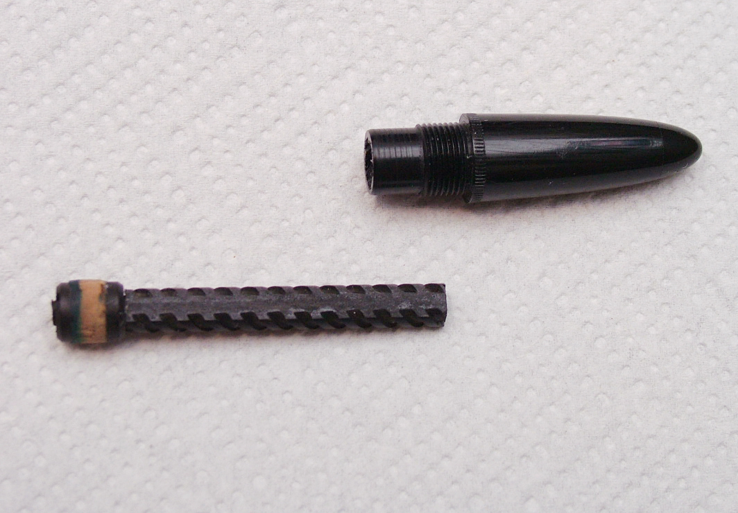 Una volta levata la sezione ruotando il fondello posteriore si fa uscire dalla parte anteriore il pistone (l'alberino solidale col sughero), continuando a svitare viene via il fondello posteriore, lasciando il fusto completamente vuoto.