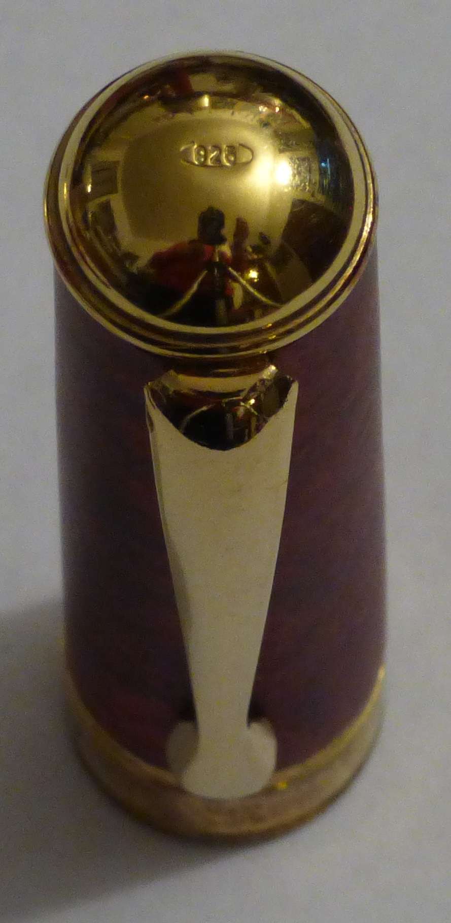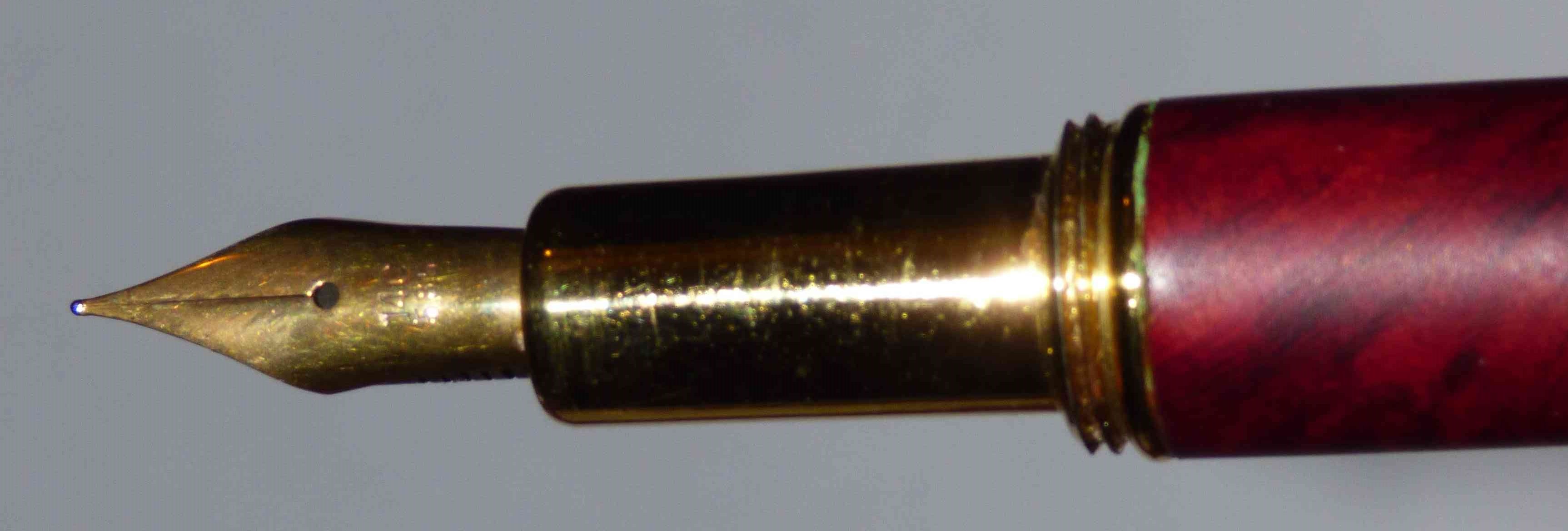 Tornando alla mia stilo le dimensioni sono di:13,7 cm chiusa e 16 cm aperta, pesa 30 gr, il pennino è in oro 14k di tratto fine, il sistema di caricamento e converter, il fusto e il tappo in radica e le finiture metalliche in argento 925 placcato oro.