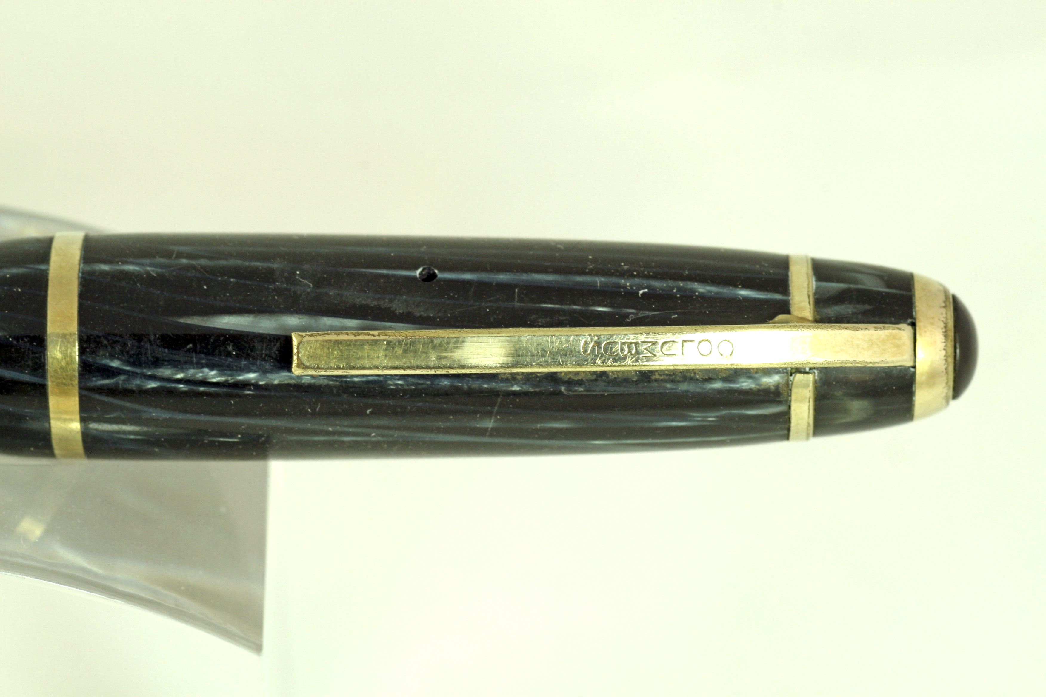 E' in una bellissima celluloide arco blue, in ottime condizioni e funzionante dopo il cambio del sacchetto ma purtroppo non ha il pennino originale ma un Osmiridium in oro 585 molto rigido.