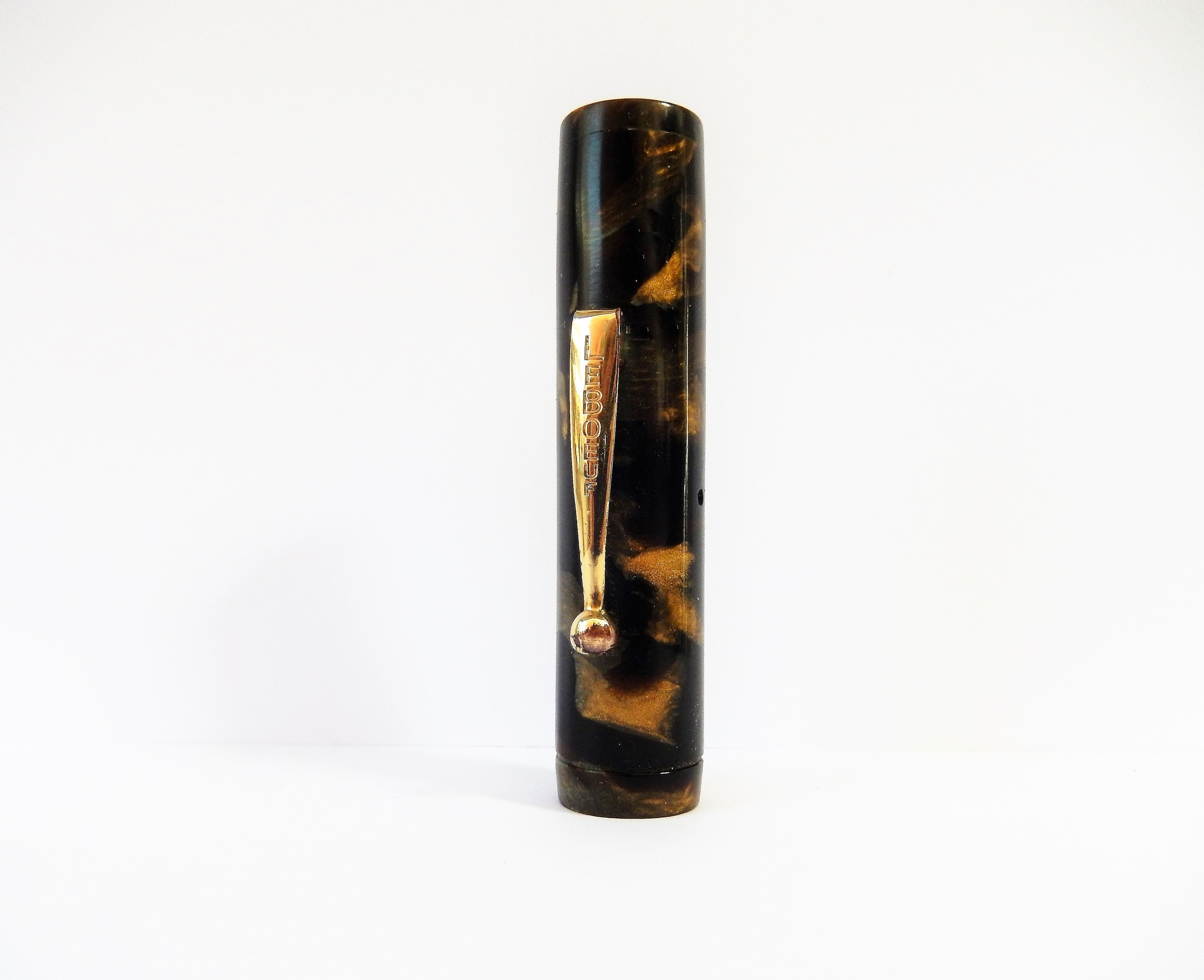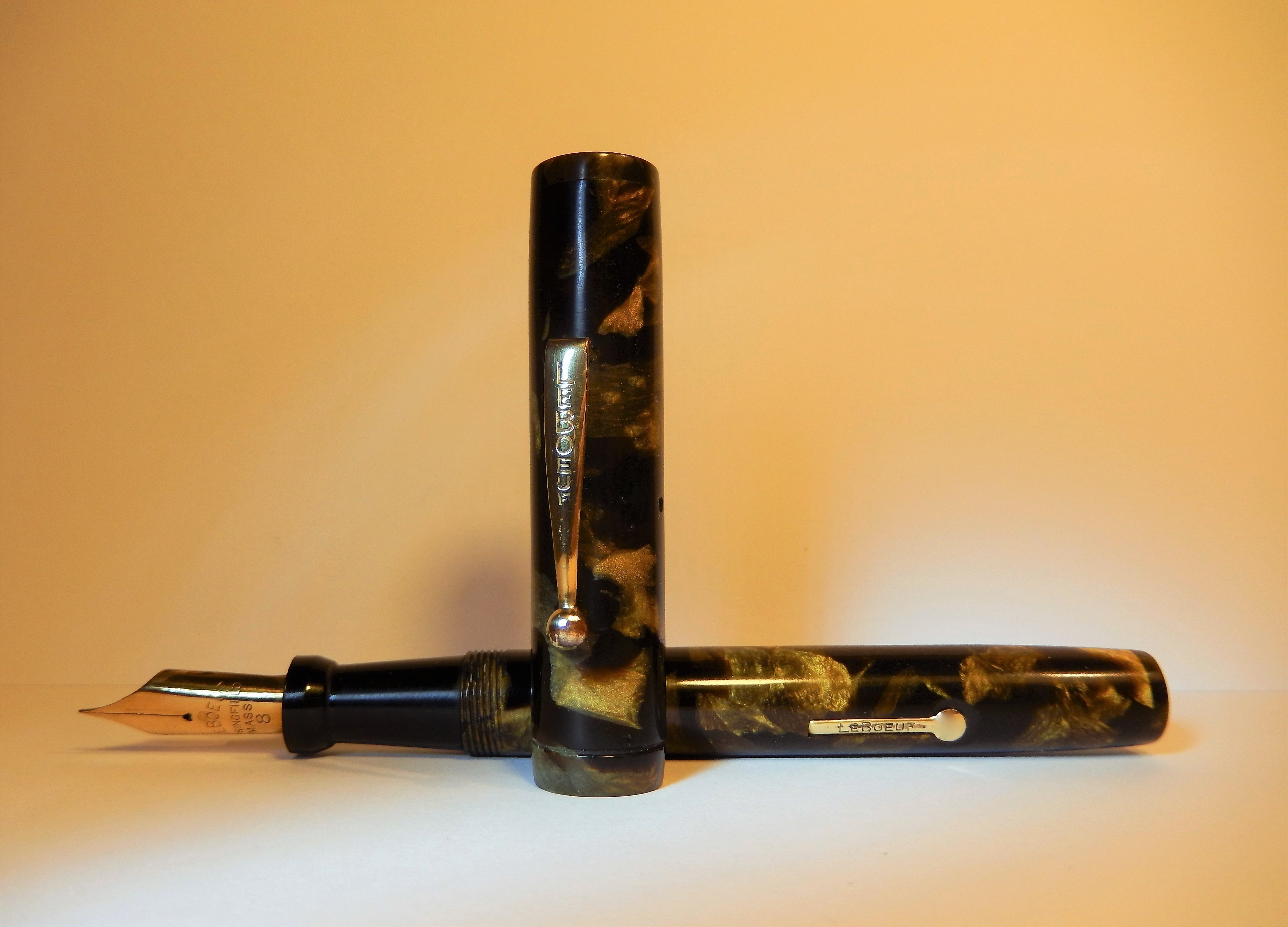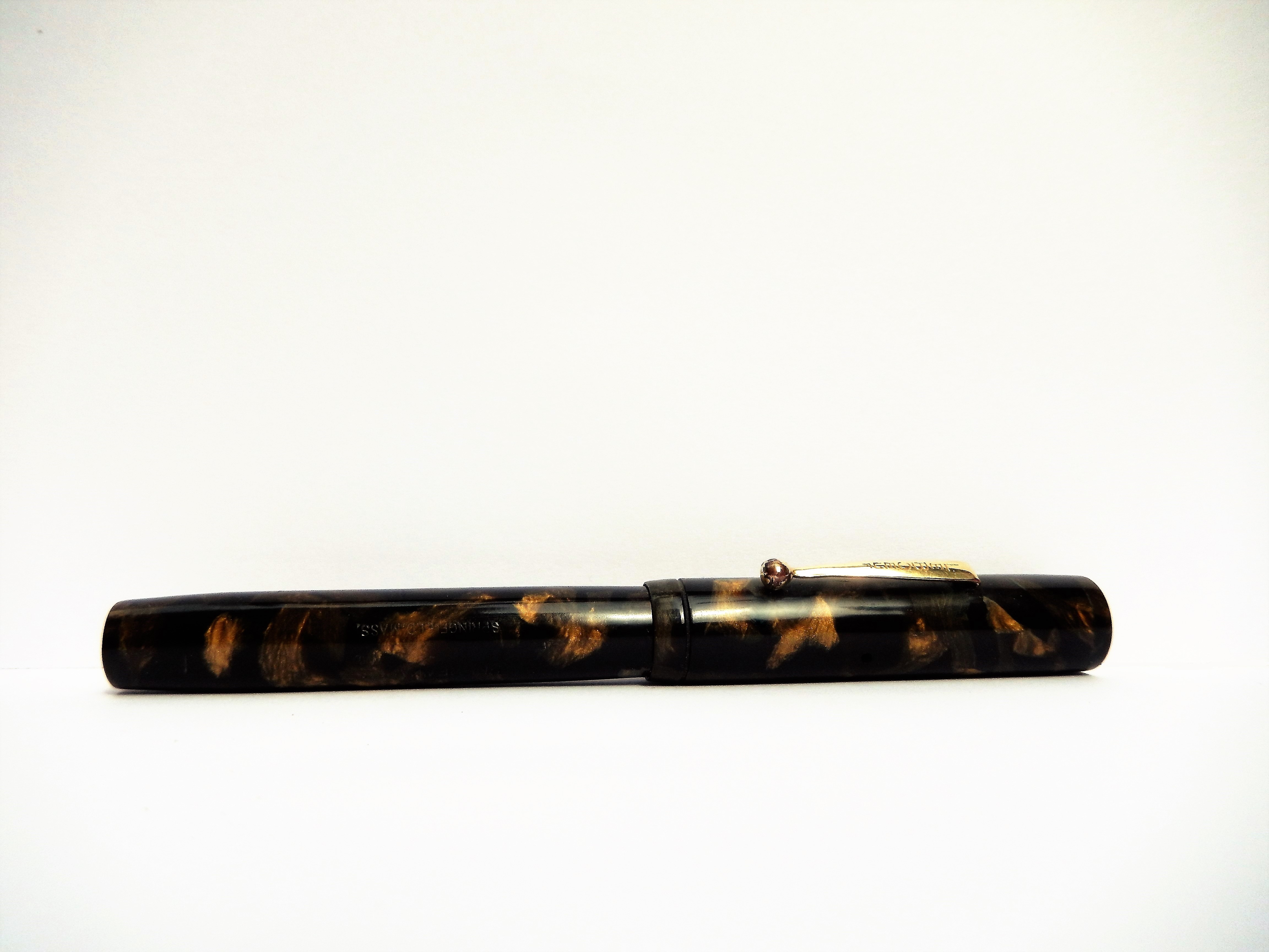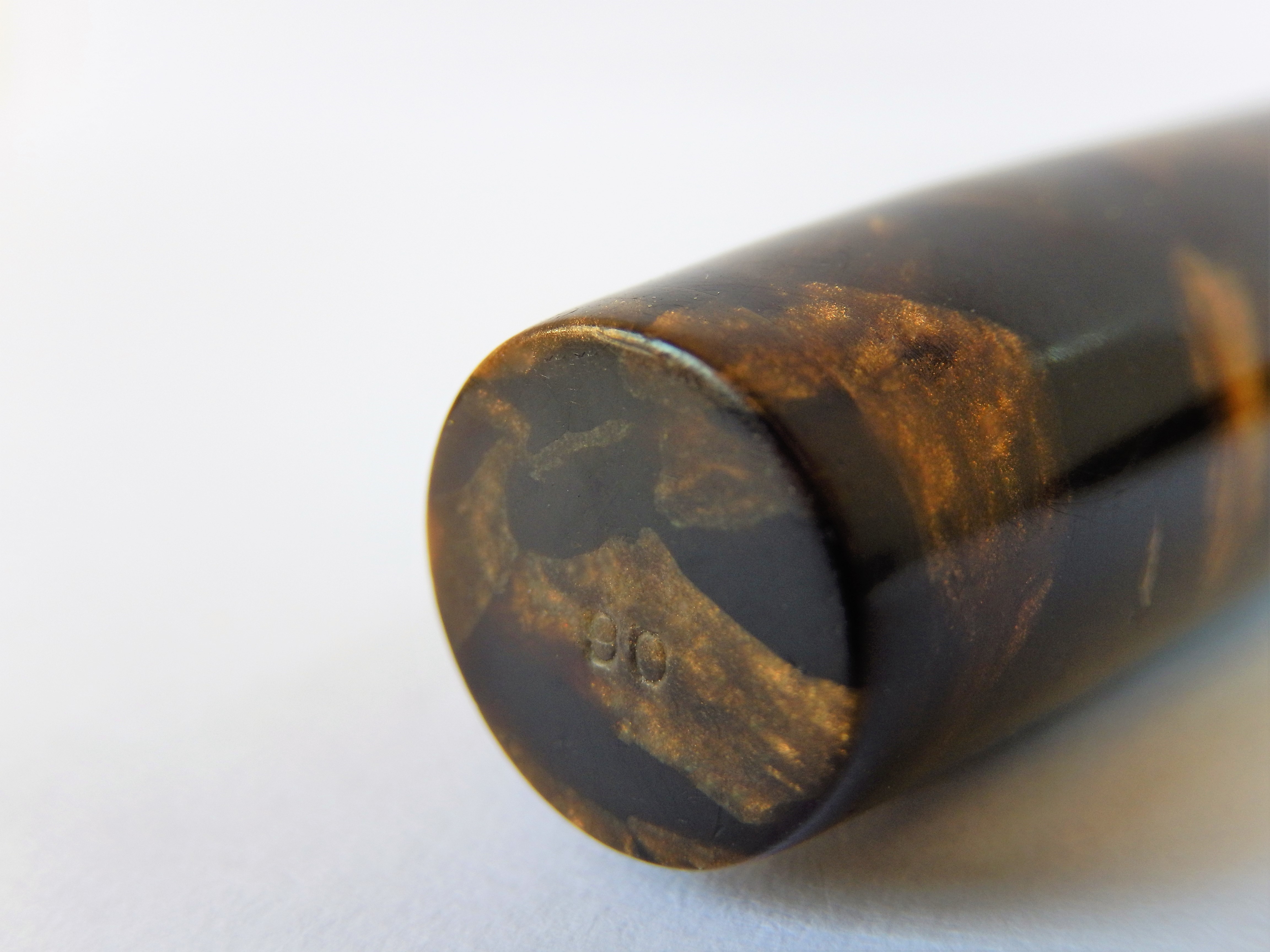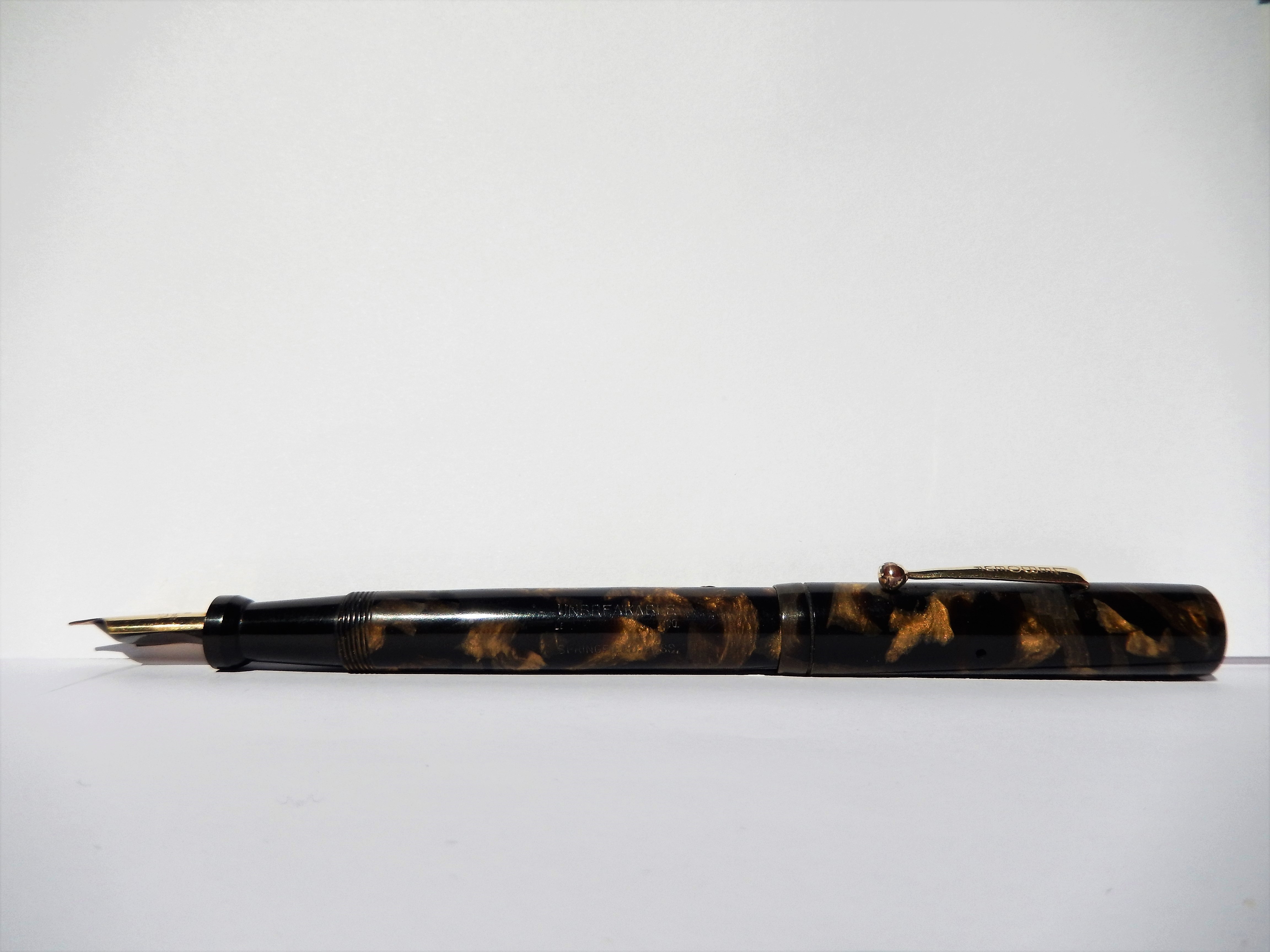 Molto particolare, su una stilografica con un pennino così opulento (ce lo mostreresti anche all'opera?), la mancanza di anellini decorativi: ma di oro ce n'era già abbastanza nella celluloide, a quanto dici.