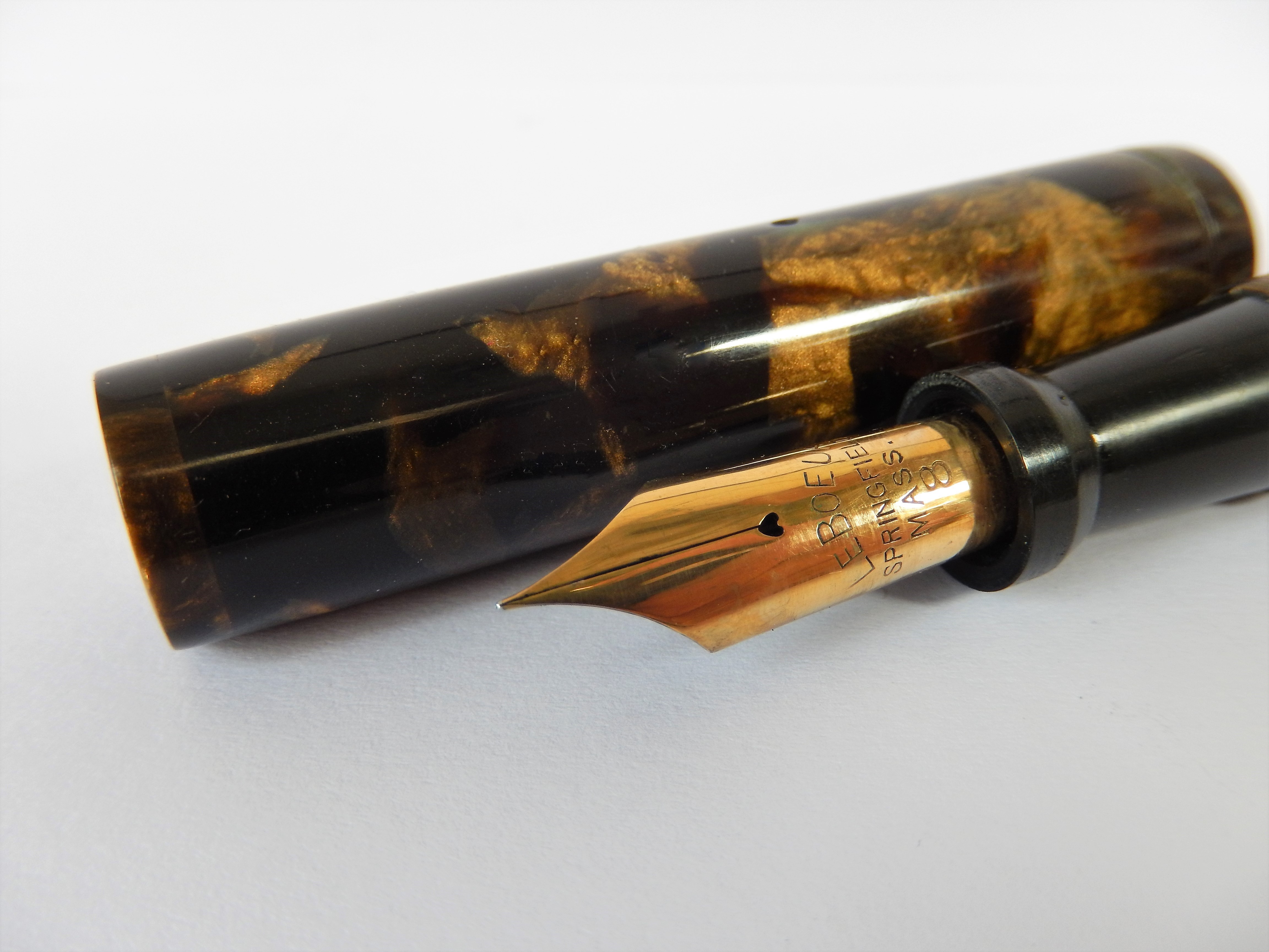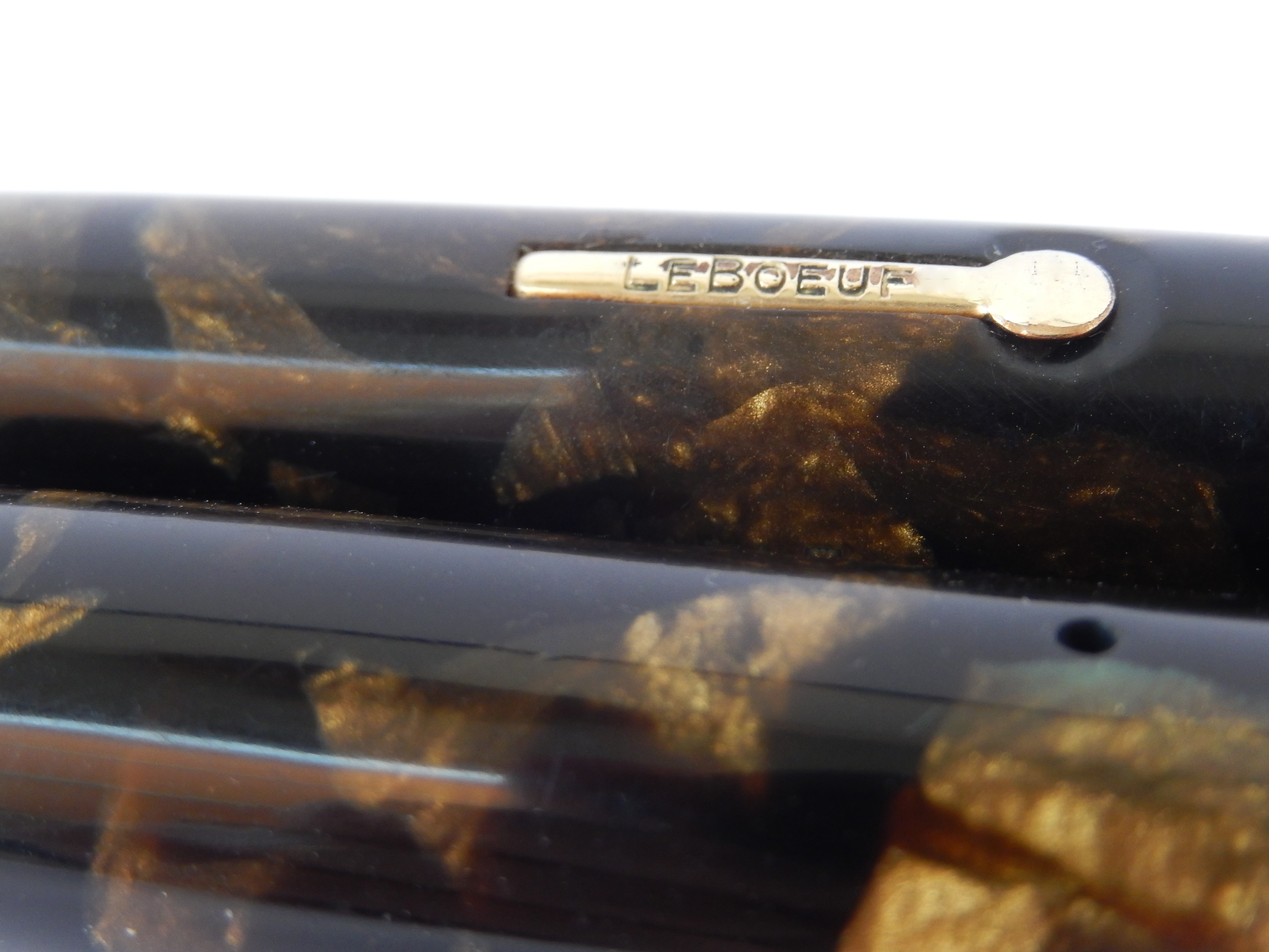 Non mi dilungo sulla storia del marchio, rinviando alle ampie informazioni presenti sul nostro wiki. Sottolineo solo che la LeBoeuf fu con ogni probabilità la prima casa a produrre stilografiche in celluloide colorata, primato che qualcuno mette in discussione con la Conway Stewart, e comunque in ampio anticipo rispetto al 1924 quando la Sheaffer's, prima fra le Big four, approdò alla celluloide lanciando sul mercato, con ben altra e superiore potenza di marketing, la sua Lieftime jade green. Del resto a riprova del legame imprescindibile fra la LeBoeuf e l'utilizzo della celluloide nelle stilografiche può ricordarsi che già nel 1919 Frank Le Boeuf aveva registrato un brevetto, il n. 245314, presente sul wiki, dove fra l'altro si legge :