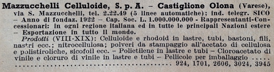 Infatti negli anni '60 l'azienda, che continuo ad essere nota come "Mazzuchelli", con l'ingresso degli Agnelli nell'azionariato cambiò nome in S.I.C. (società italiana celluloide).