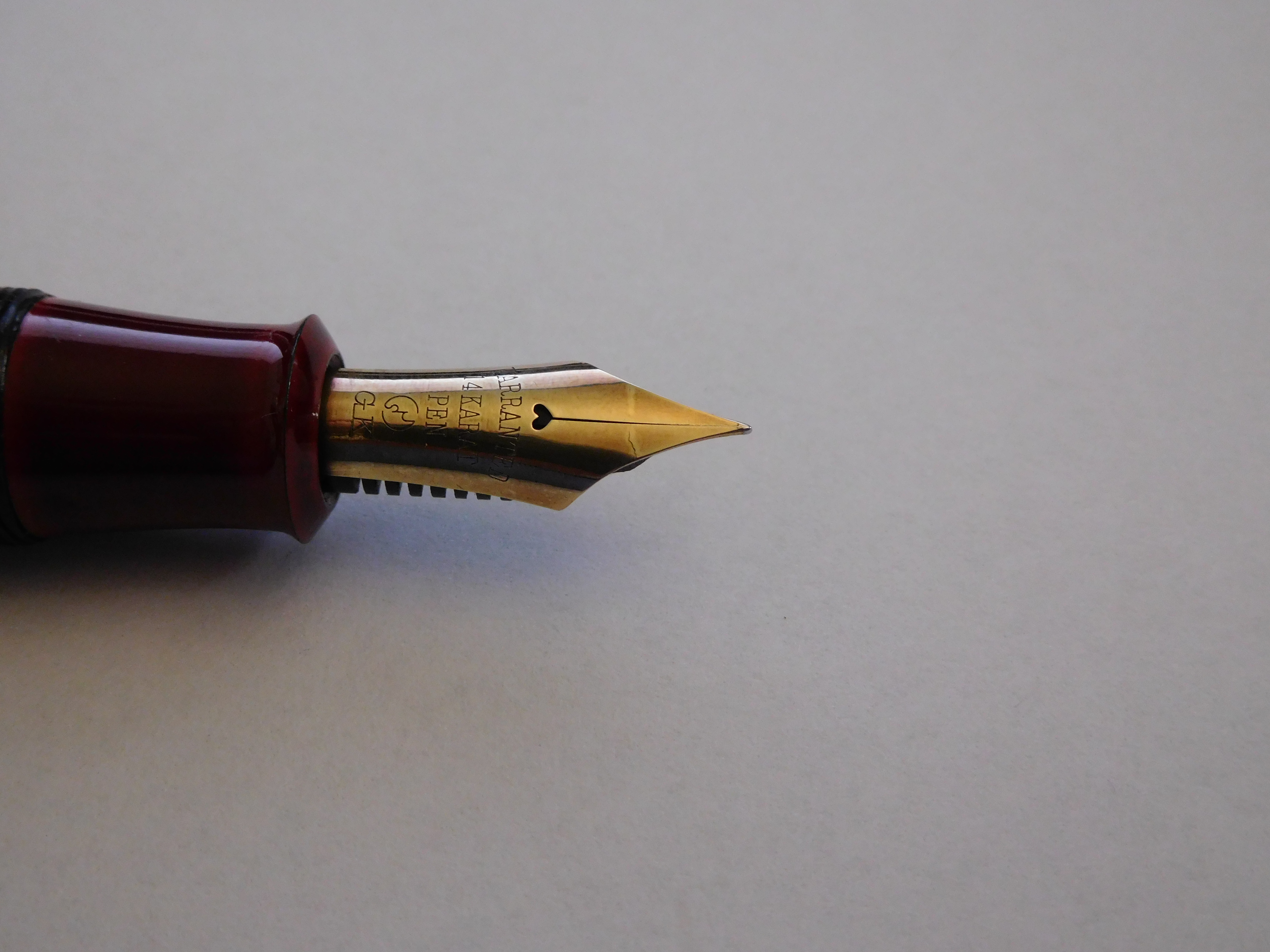 ho acquistato, su un noto sito internet, una Visconti Urushi red, completa di scatola. Appena arrivata, ho notato che il pennino leggermente ossidato era attraversato da una striscia più chiara e all'interno di questa striscia vi era una CREPA. I rebbi si presentano leggermente disallineati e anche l'alimentatore risulta stranamente asimmetrico. Mi viene da pensare all'esito di un restauro.