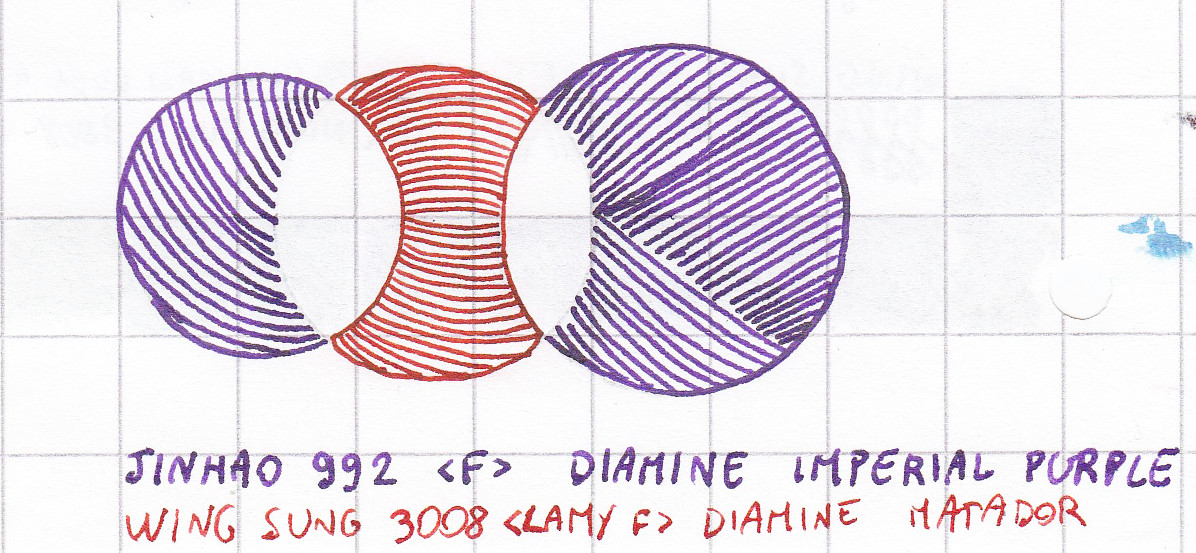 Diamine Imperial Purple su Rhodia. Un inchiostro difficile da lavar via ma con una bella patina dorata.