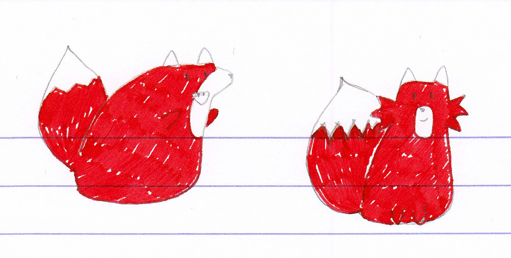 Qui mi ero dimenticata di ripassare gli occhi delle volpi con un inchiostro nero e sembravano cieche. Ad un mio corrispondente sono comunque piaciute.