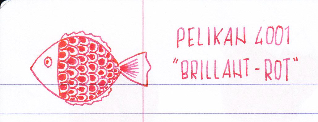 Pelikan 4001 Brilliant-Red su Clairefontaine. Qui lo scanner ha reso il colore un po' troppo rosa, è più color salmone in realtà.