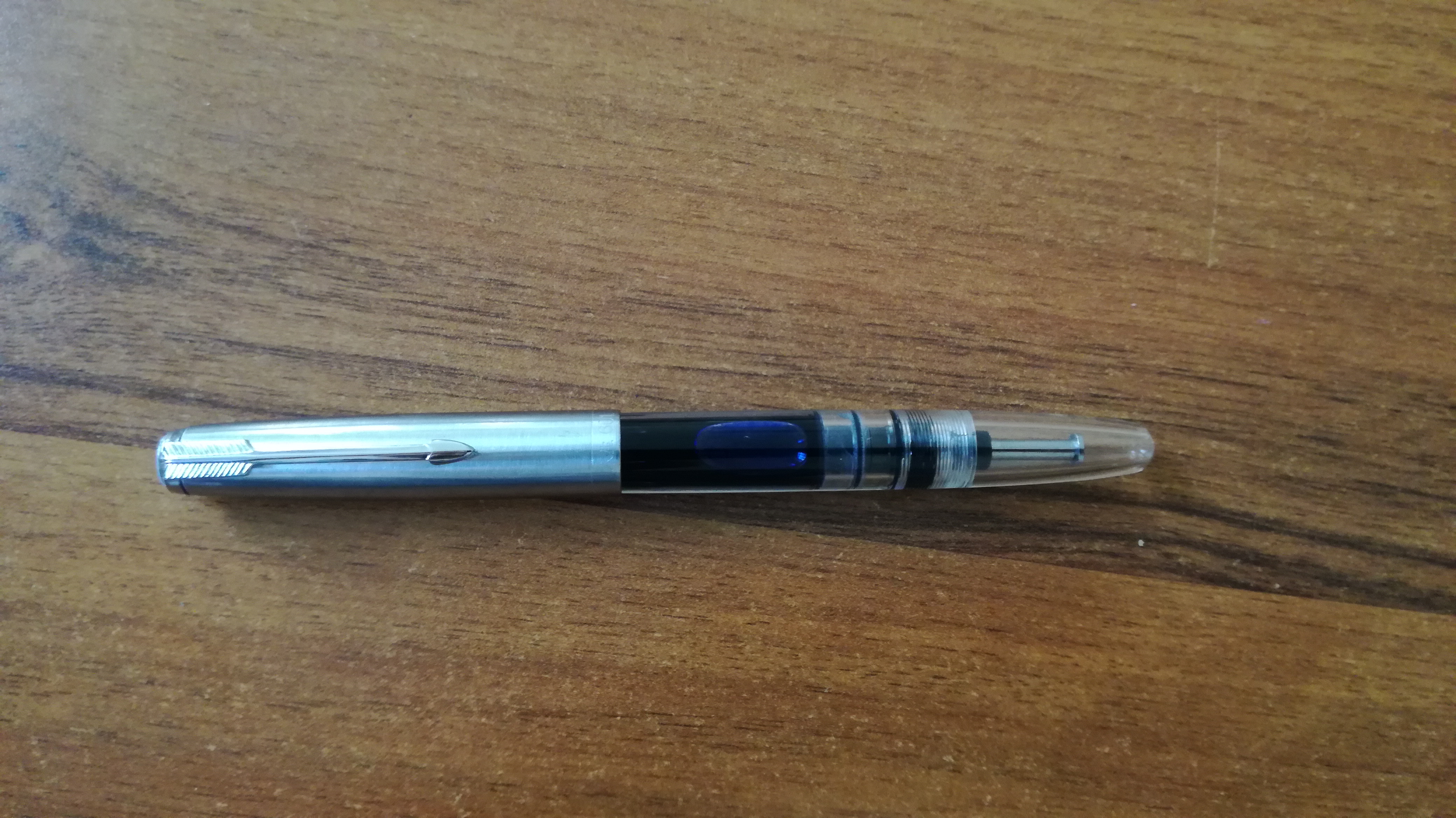 Non ho poi saputo resistere..... ben fatta, caricamento efficace, pennino scorrevole... per la prima carica l'ho nobilitata con un blu diamine... poi passo al dollar, non vorrei si abituasse male... :wave: