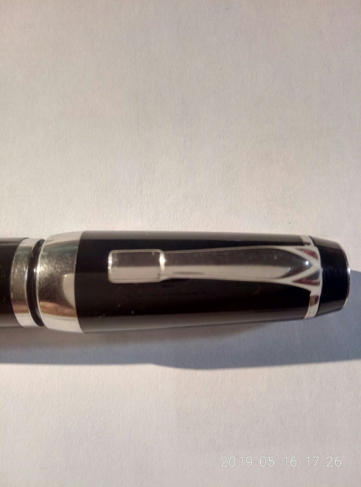 Ecco qui le foto della penna in questione. Escluderei che sia falsa, in quanto riportato anche il numero di serie. In caso lo fosse, mi sembra davvero un'ottima imitazione! Come si può evincere dalle foto escluderei anche che la pietra si sia staccata, perché non mi sembra di ravvisare una sede per l'incastonatura della penna.