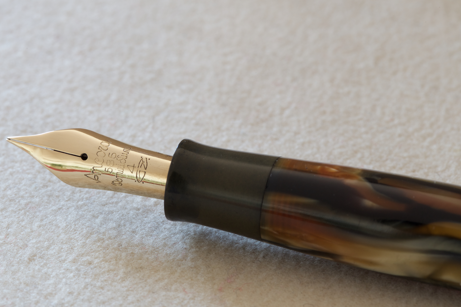Bellissima anche questa celluloide, uno stiloforo "Ancora" con caricamento a bottone di fondo e pennino Ancora nr.4.