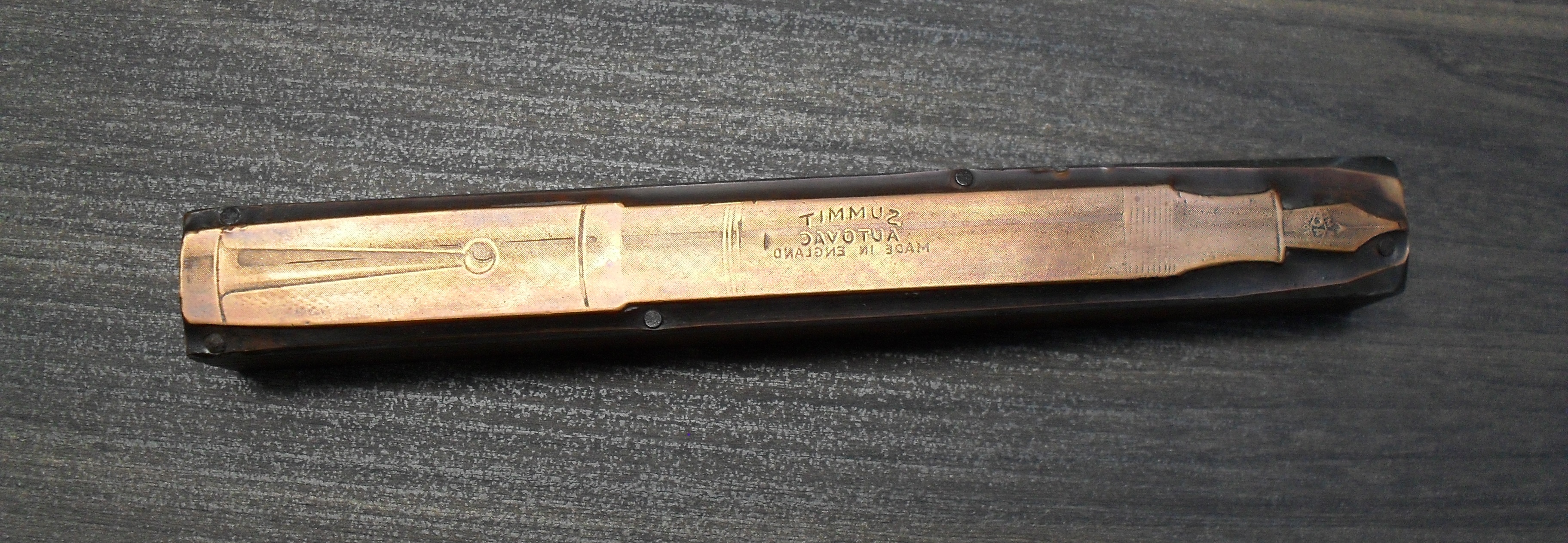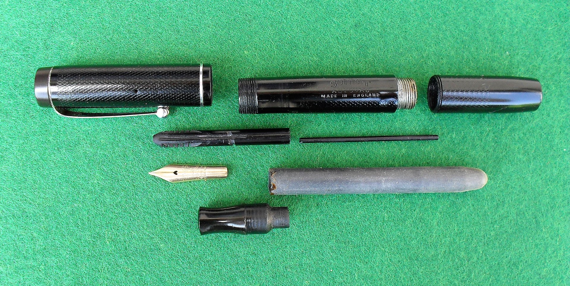 Nulla di speciale, temo, ma confesso che sono particolarmente contento d'aver potuto aggiungere alla mia modesta collezione anche questa testimonianza storica, che tra l'altro dimostra come, almeno su alcune varianti di questo modello, il pennino fosse marchiato "Summit AC" (le ultime due lettere inserite in un rombo orizzontale).
