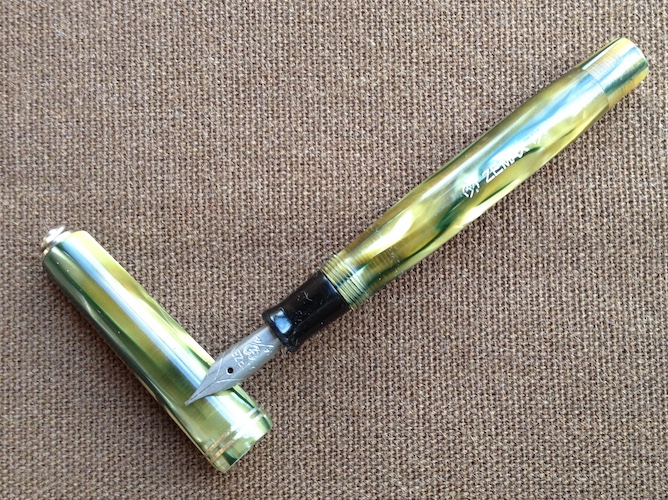 La penna è davvero interessante, quella combinazione perla verde non si vede spesso. Purtroppo però sul modello temo sia difficile poterti esser d'aiuto, sulla storia della produzione di Massimo Zeme temo esista ben poco materiale.