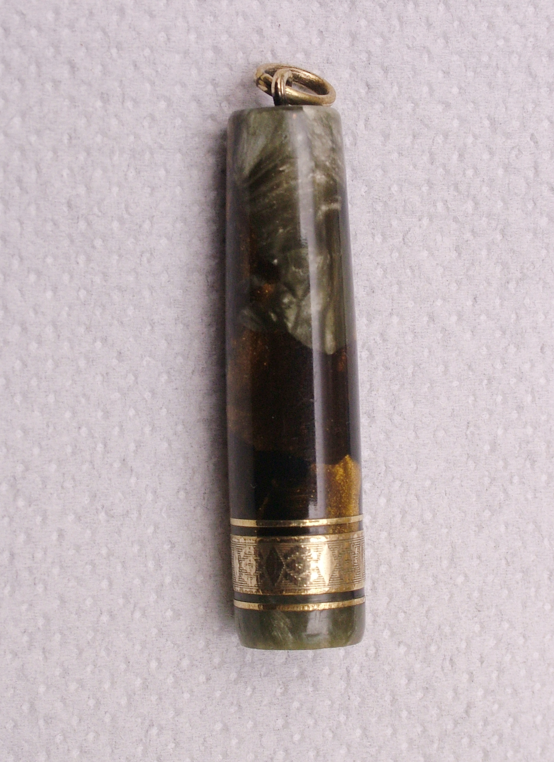 è una gran bella penna, sia per il colore, che per quella veretta con una decorazione molto particolare. Bel ritrovamento.