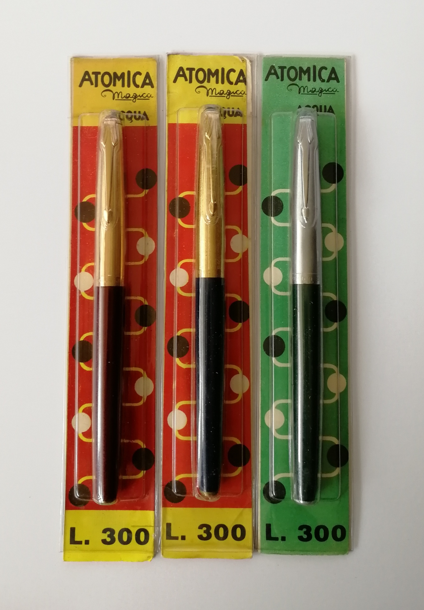 ho acquistato da un mercatino di antiquariato delle penne: una "Montegrappa" di cui non riesco ad individuare il modello e tre "Atomica Magica 300" (con inchiostro solido solubile) di cui non riesco a trovare una descrizione. Non sono riuscito a trovare nulla su internet, quindi non so neanche dar loro un valore economico. Come ho già detto nella mia presentazione, sono un rivenditore di penne e ho la necessità di dare agli acquirenti una descrizione più dettagliata possibile di ogni prodotto. Spero che voi ne sappiate più di me Vi ringrazio in anticipo