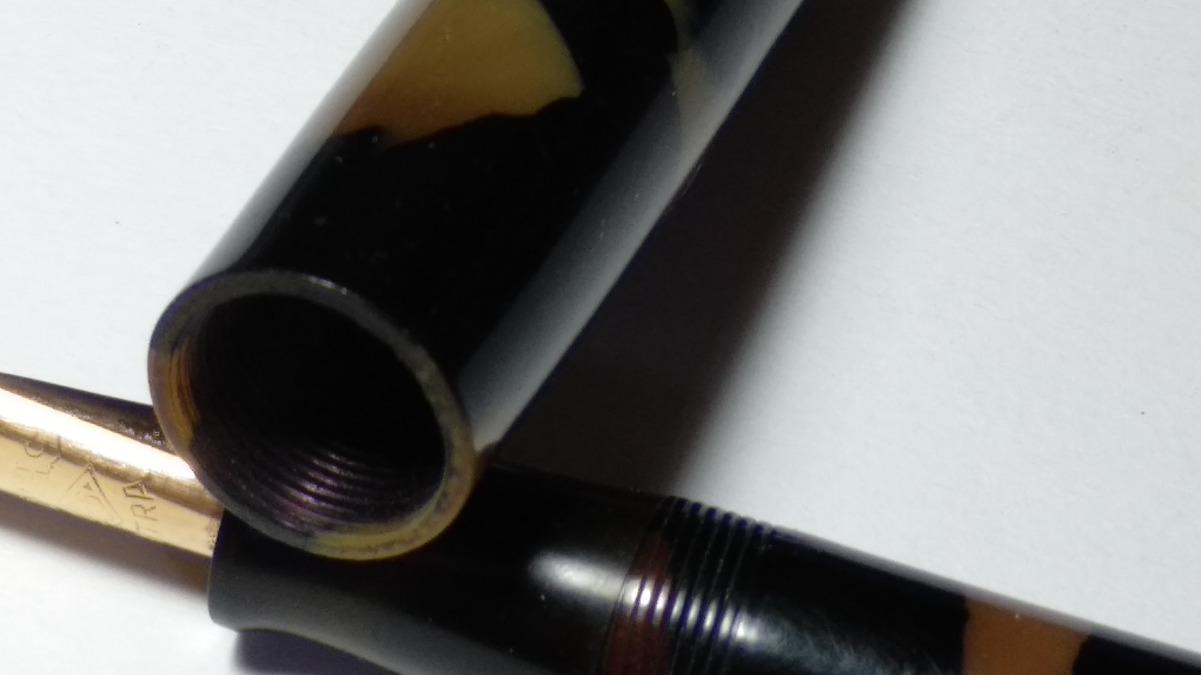 Salve a tutti, mi sono da poco iscritto al forum, vorrei sottoporre alla vostra attenzione una penna incompleta Omas Extra che presenta sul fusto la scritta su 2 righe: "Banco di Napoli - La banca più antica del mondo". Purtroppo come si vede dalle foto manca la parte superiore del cappuccio e il fermaglio in metallo, inoltre il tastino per caricare sembra bloccato (non ho spinto forte per paura di rompere qualcosa).
