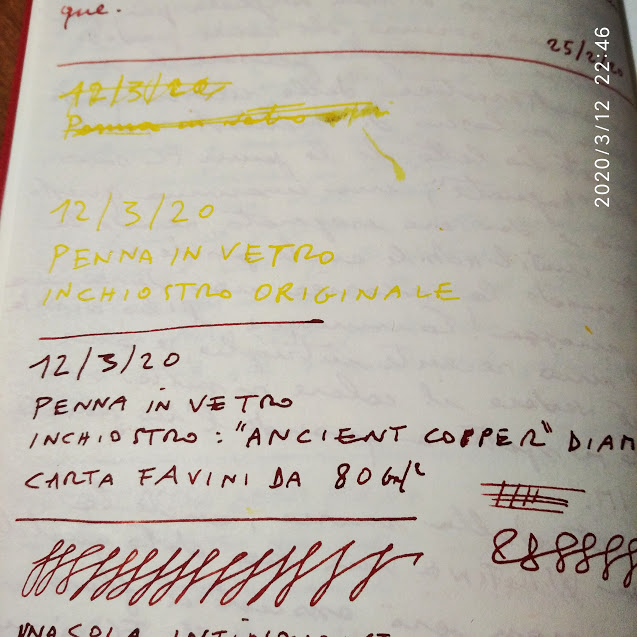 Ho una penna di vetro cinese presa su amazon, funziona bene, ma non lascia un tratto facilmente paragonabile a quello che una stilo lascerebbe con la stessa combinazione carta+inchiostro: mette giù MOLTO più inchiostro. Comunque è praticissima e piacevole da usare, se la trovi a pochi soldi prendila senza indugi.