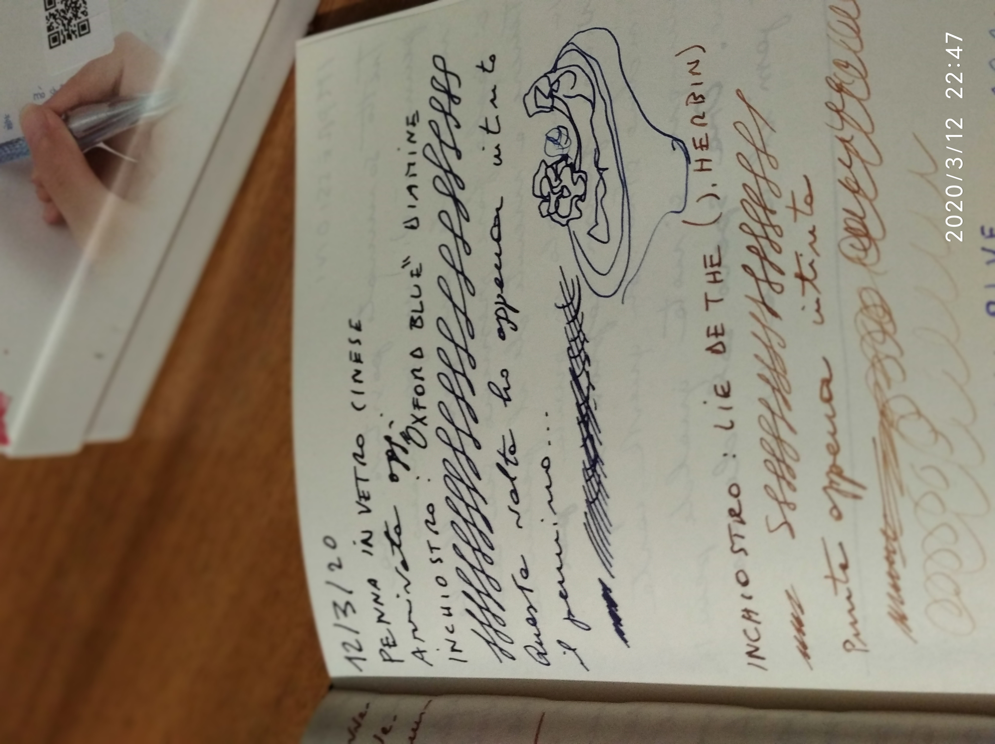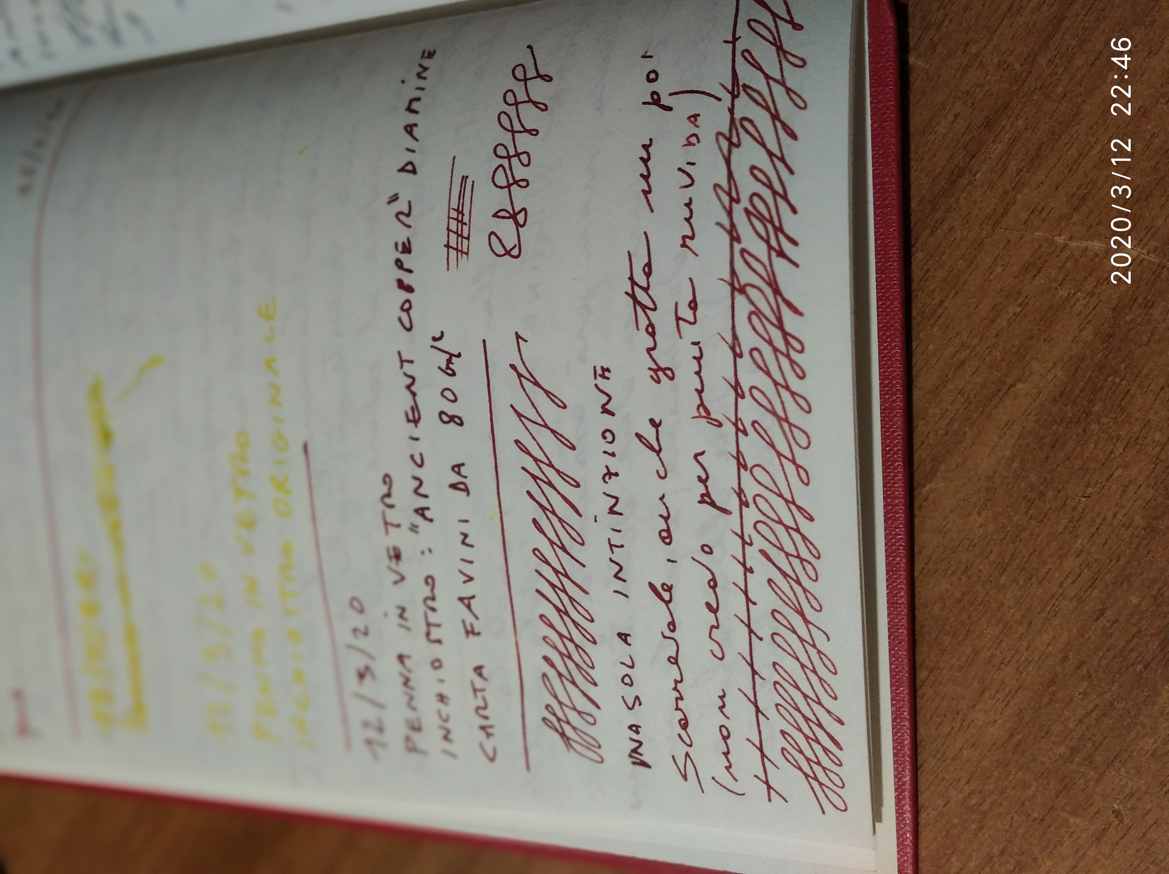 Commento finale, tutto sommato positivo, per l'uso che ne voglio fare va bene. Ma non la farò vedere ad altri... mi vergognerei troppo. Su Amazon la descrizione si limitava al materiale e alle funzionalità, le idee "estetiche" non erano riportate. Anche dalle immagini non si capivano. Credo se l'avessi capito avrei preso altro, magari risparmiando anche qualche euro (ne avevo viste persino a poco più di 1). Riguardo alla funzione, ho intinto anche appena il pennino e ha scritto parecchio. Il brutto è che all'inizio il flusso è troppo abbondante, col risultato che la carta Favini, altrimenti impeccabile, ha subito qualche "puntura" da penetrazione. Ma sopra su questo problema mi avevate informato, e quindi ero preparato. Per risolvere il guaio comunque basta scrivere una prima parola su un pezzo di carta a parte.