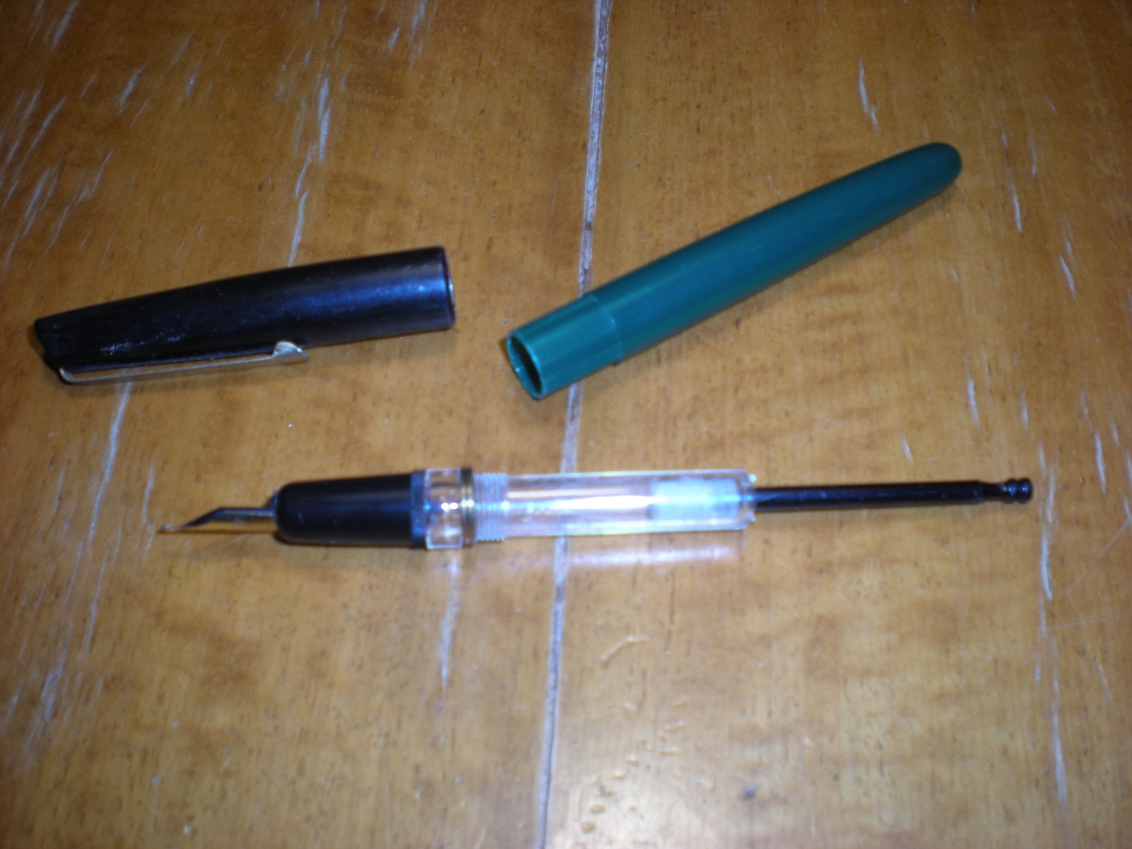 Per caricarla dovevo spingere il pistoncino verso il pennino, questo entrata quasi tutto nel serbatoio; poi, dopo aver immerso il pennino nella boccetta del 4001 dovevo tirare il pistoncino verso l'alto ed il serbatoio si riempiva. Poi riavvitavo il fusto. Quella è stata la prima, poi la seconda era molto simile e aveva le cartucce TP/6.