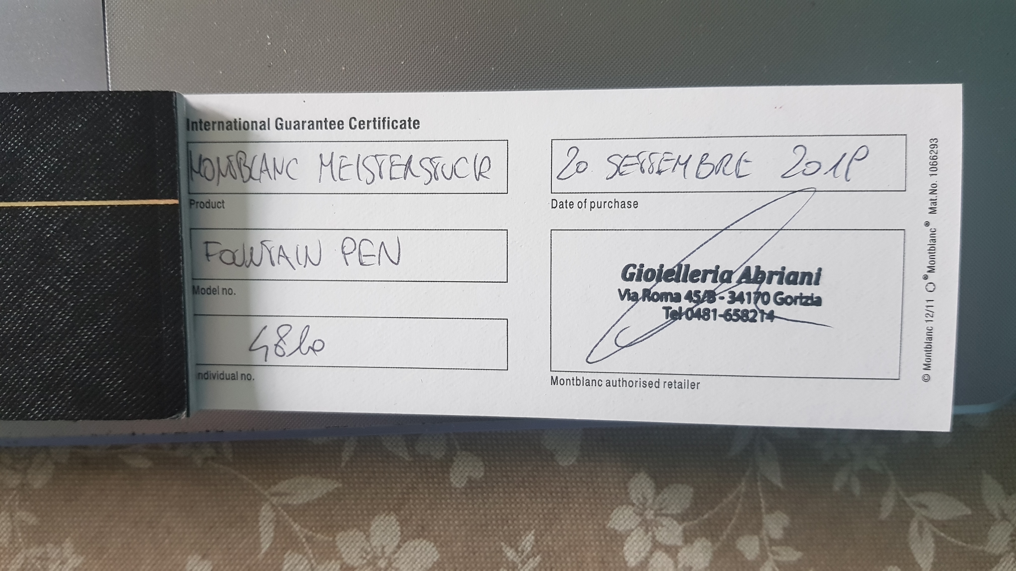 La foto che hai messo, sempre secondo me, è di un pennino troppo rovinato per essere stato acquistato di recente, e di un pennino troppo strano per essere un Montblanc. Il negoziante che te l'ha venduta ti ha rilasciato lo scontrino e timbrato la garanzia e tutte quelle cose e scartoffie che si fanno solitamente per essere a posto in termini di legge?