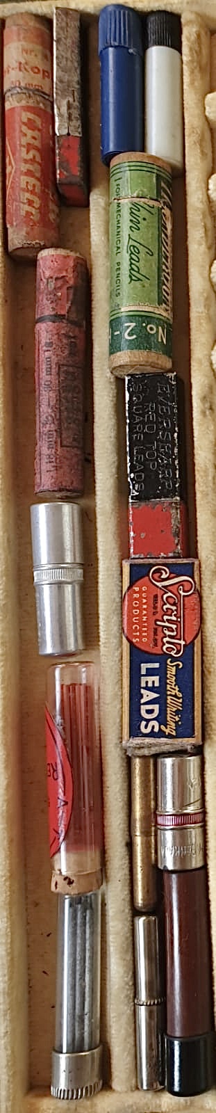 Ancora sulle Combo: a destra una Packard che mostra il porta mine corte (vedi foto contenitori + 'affila punte’) per lasciare spazio al gommino per l'inchiostro. Con l'occasione ho il piacere di condividere altre tre Combo: Schnell’s Penselpen, ricorrenziale per la trasvolata atlantica di Charles A. Lindbergh. Una Sonnecken RIENTRANTE. La laminata oro Uhlmann’s Eterno, con la precedente, estremamente rara.