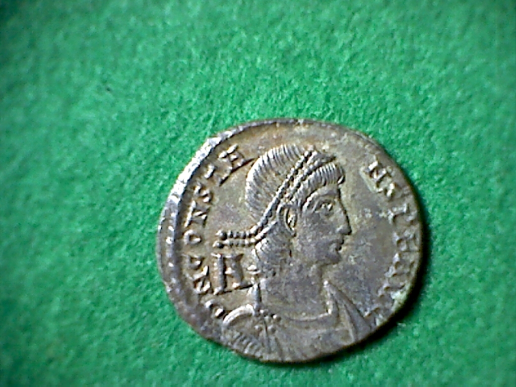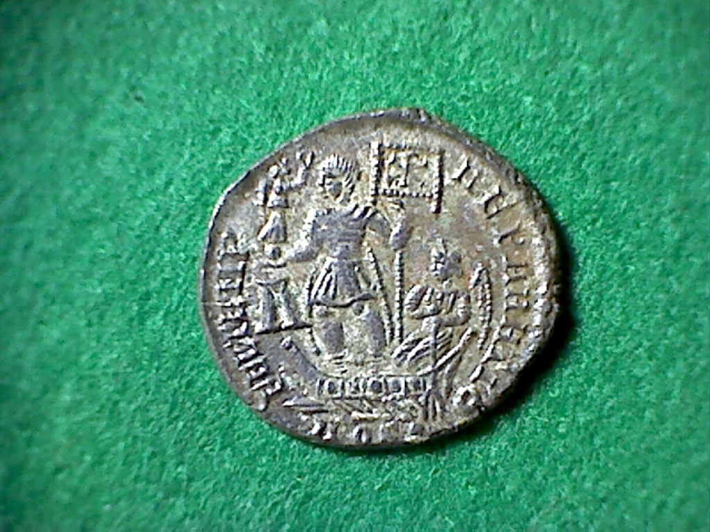 L'imperatore Costanzo su una barca, guidata dalla Vittoria, regge una Vittoria che gli porge una corona. Notare il labaro con il Cristogramma.