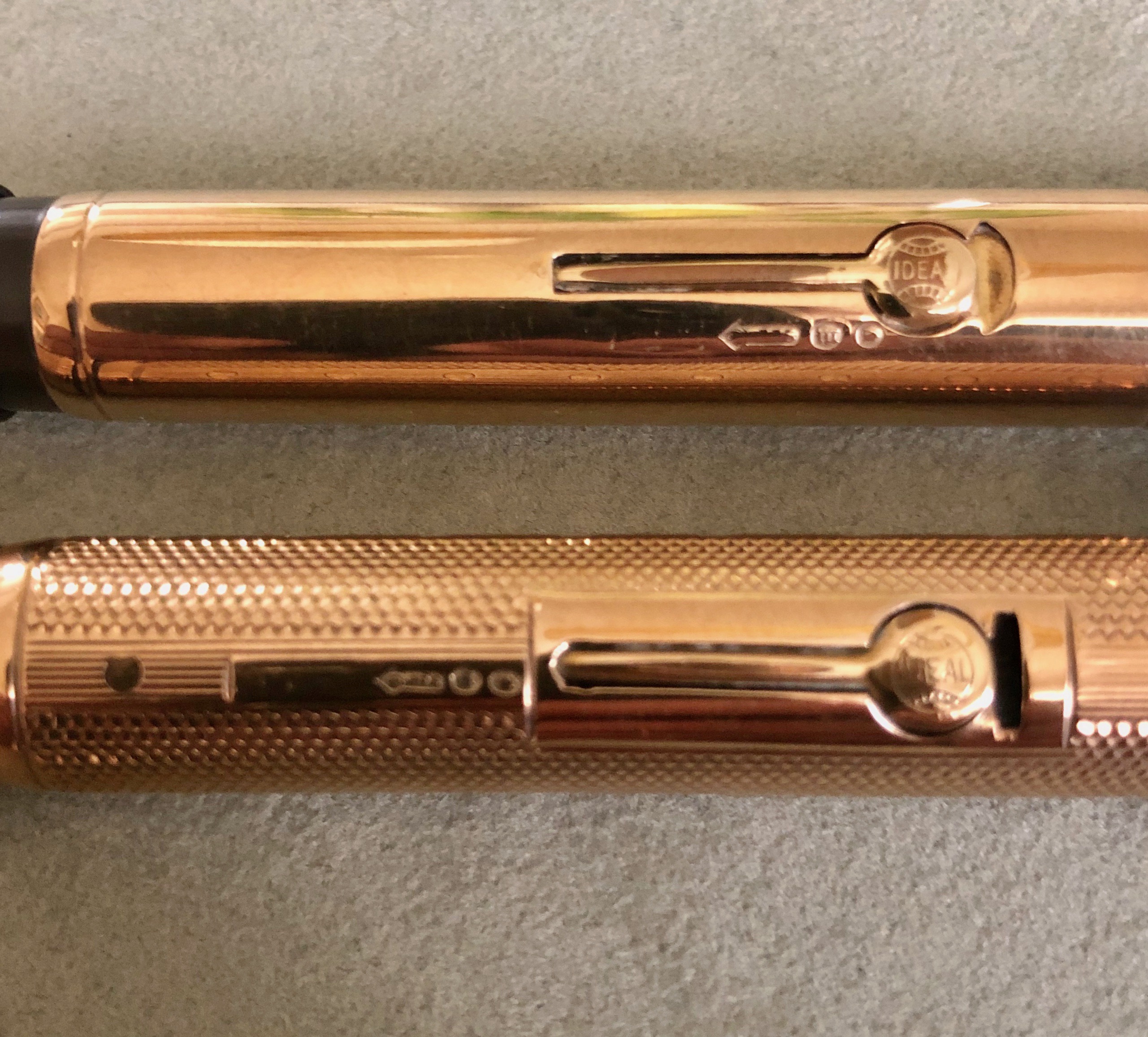 Due esemplari abbastanza particolari in quanto presumibilmente rivestiti in oro 9k, quello che Italia veniva chiamato come "oro basso".