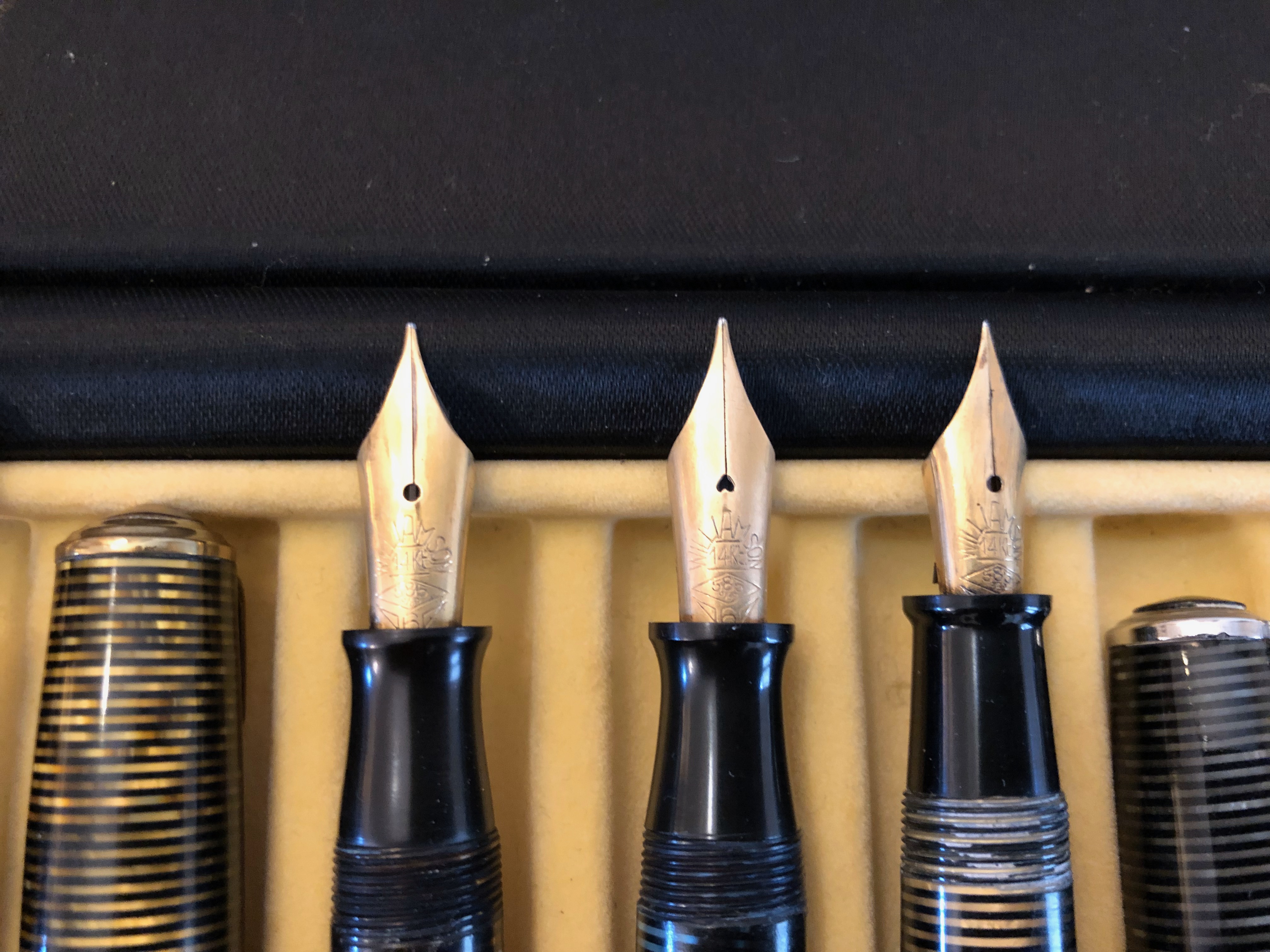 Sono penne fatte meravigliosamente bene, di una celluloide "spessa" e ben stagionata; a mio giudizio molto meglio delle blasonate Vacumatic a cui chiaramente si sono ispirate.