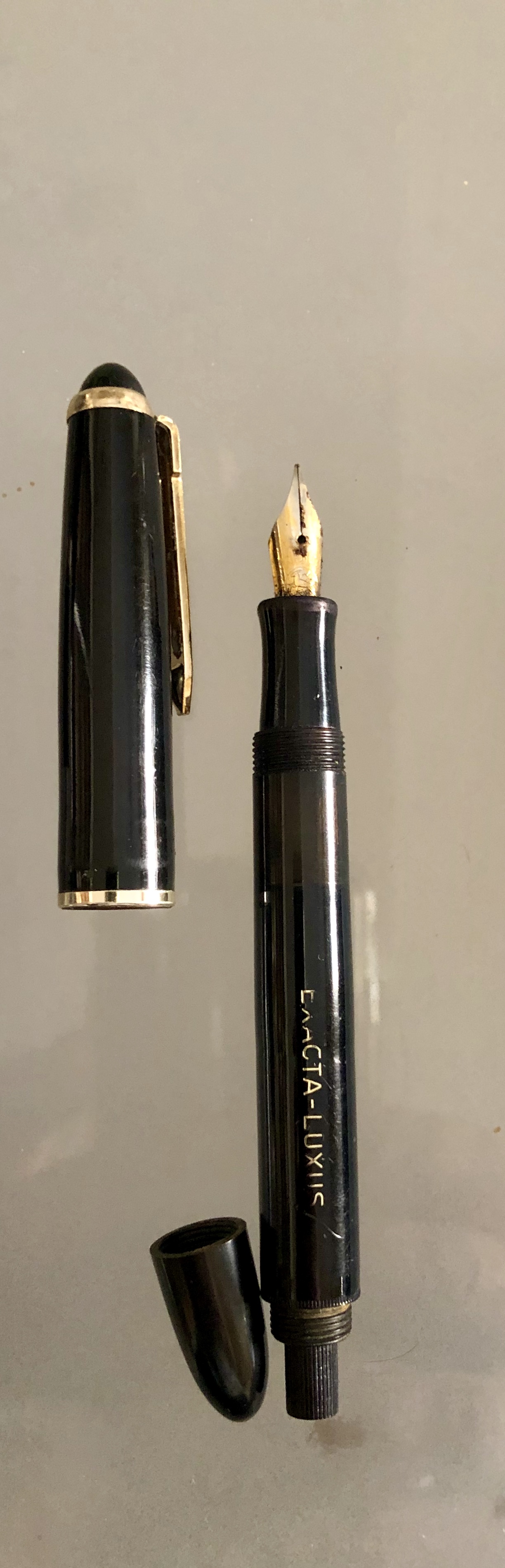 L'altro giorno, in un mercatino ho trovato la penna in foto. Sul fusto presenta le scritte Exacta - Luxus e Made in Germany