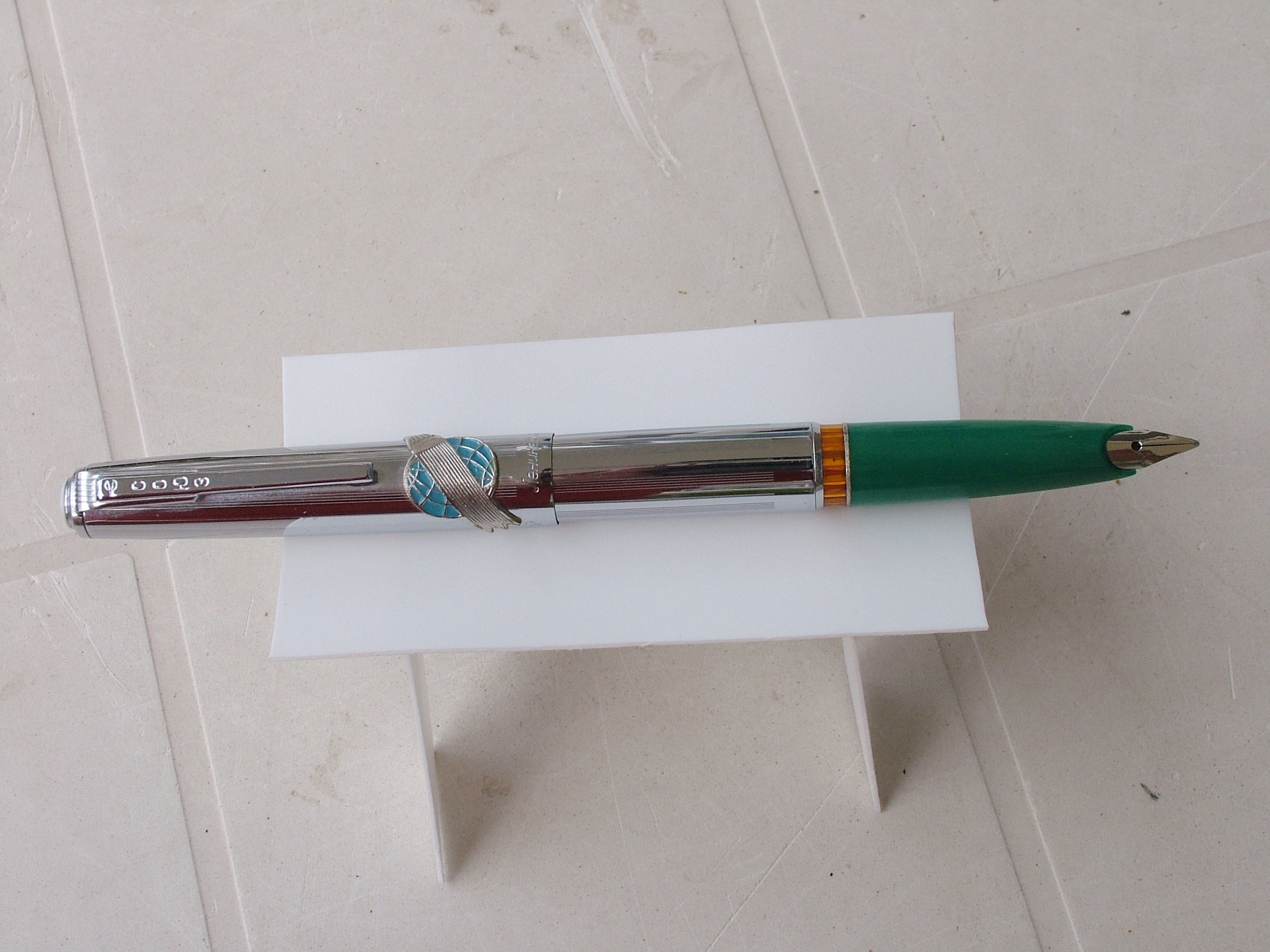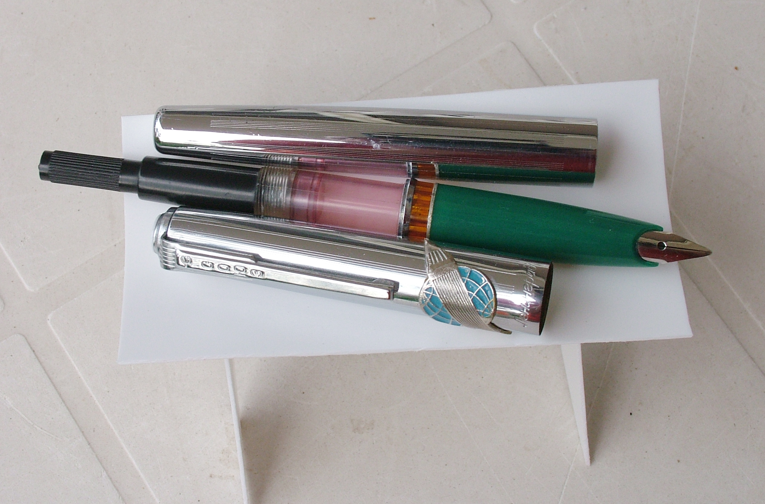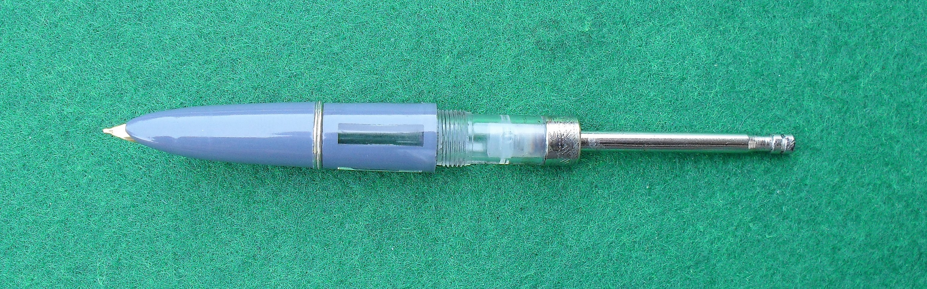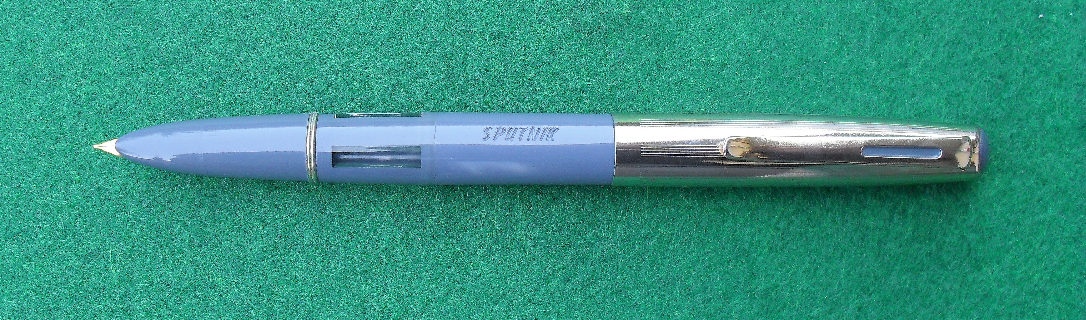 - visivamente questa penna mi ricorda tantissimo le numerose penne economiche italiane con caricamento a siringa, pennino senza iridio e circa coeve dello "Sputnik" satellite artificiale.