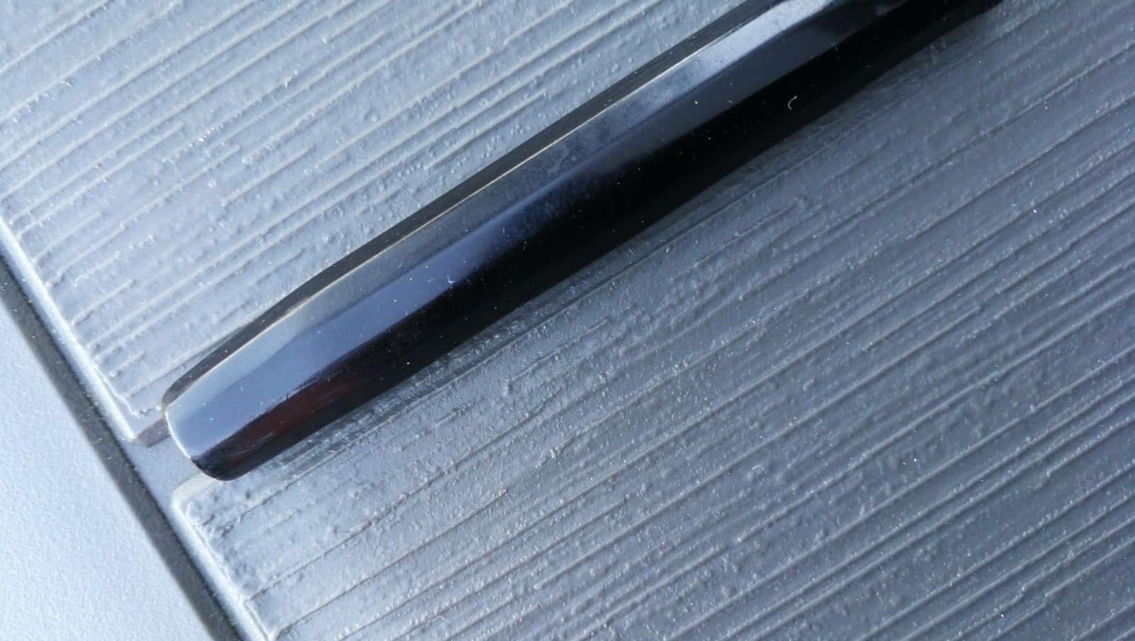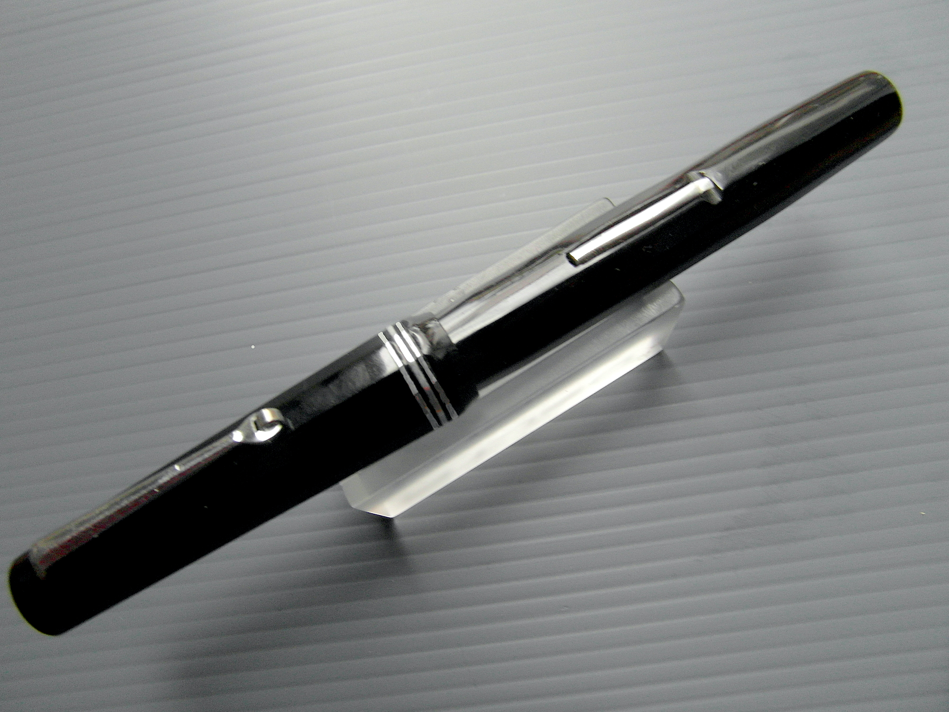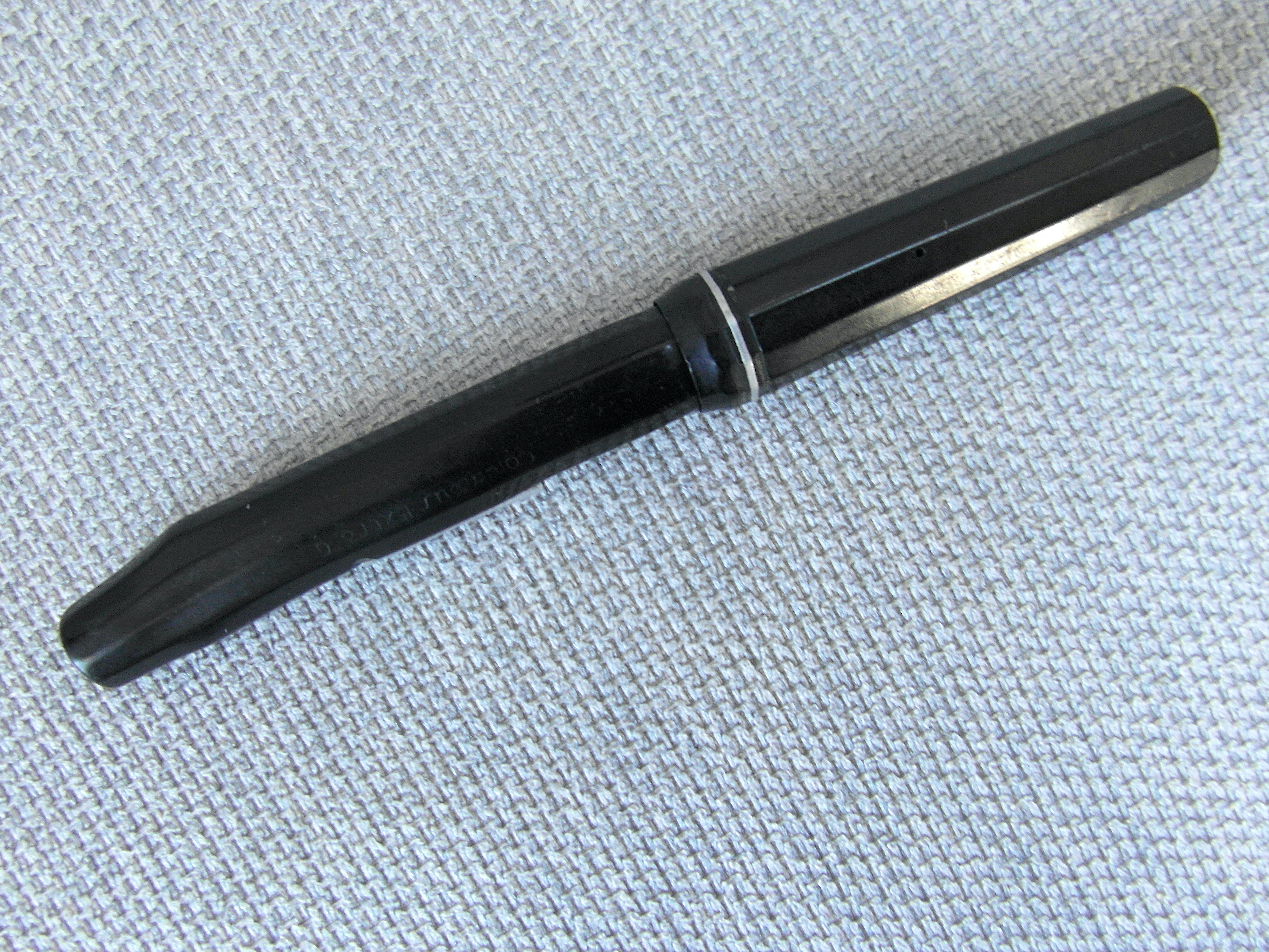 La clip spezzata alla radice, il pennino non è l'originale, l'attacco del serbatoio sul puntale è parzialmente rotto e mancano due anelli su tre. Il problema più grande è comunque la paurosa deformazione della parte terminale del corpo, che fanno somigliare la penna ad un bastone da golf.