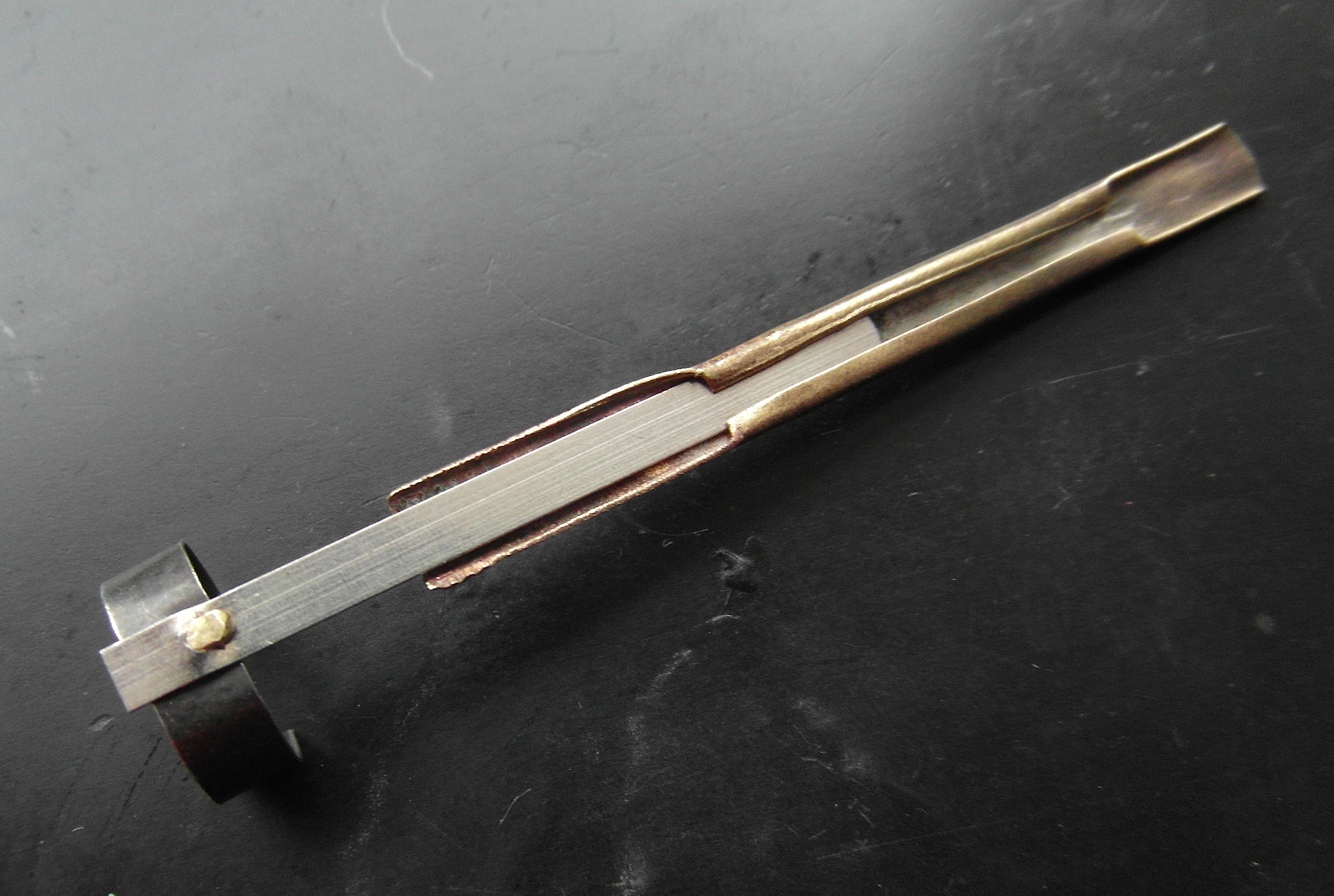 A questo punto però c'è da risolvere un problema non da poco: Una nuova J-bar tornerebbe a sollecitare le zone che si erano deformate, col concreto rischio di ritrovarsi nel tempo punto e accapo. Riflettuto sul problema, la soluzione migliore mi sembra quella di costruirmi una barra di pressione che non esiste alternativa alla J-bar. Con un certo orgoglio vi presento la Cross - bar, che sta in posizione forzando non su una sezione longitudinale della penna, ma su una trasversale. Posso dirvi funziona egregiamente.