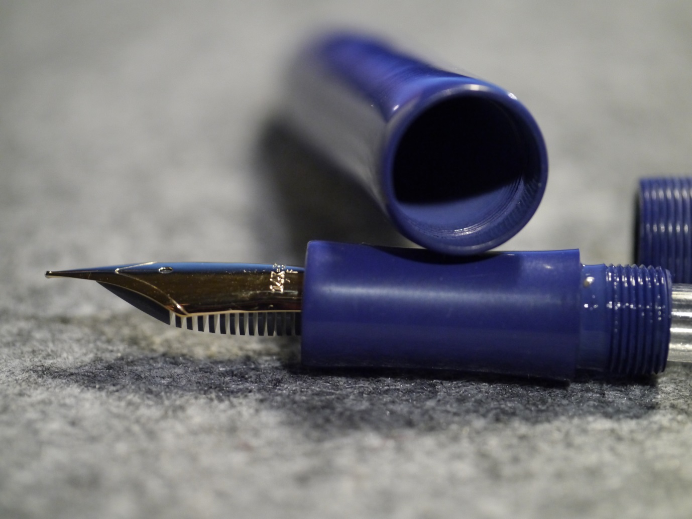 Se dobbiamo parlare del pennino, confesso di esserne rimasto abbastanza deluso, per quanto si dica bene della Kanwrite. Il pennino è un fine che inizialmente grattava ed ho dovuto dargli una passata di micromesh, il flex ce l'ha solo nel nome, per dire che la bistrattata Aurora flex è molto più flex di questo... inoltre il pennino tende disallinearsi rispetto all'alimentatore, segno che è tagliato storto...