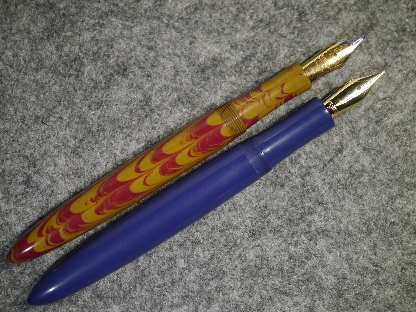 solo per completare il discorso rimasto in sospeso riguardo la mia Ranga 8B e l'esperienza negativa con il pennino Kanwrite flex (che io credo essere lo stesso che viene montato sulla Ahab) che non mi sembra sia flex per nulla, che era mal rifinito da richiedere il micromesh, e che era oltretutto tagliato storto (nell'uso si disallineava dall'alimentatore), gli iniziali tentativi di sostituirlo (è montato a frizione con un alimentatore in ebanite in eyedropper) non avevano dato buoni frutti perchè è talmente spesso che altri pennini risultando più sottili non stavano correttamente in sede...