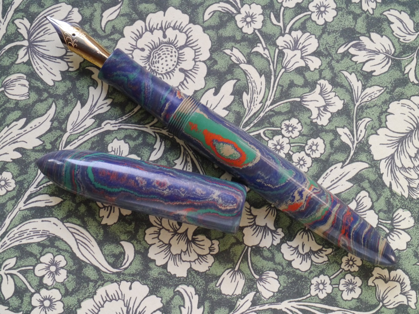 per dare una idea della scelta, ecco un'altra 8B (ebanite premium blue-white-green-orange) pennino Jowo