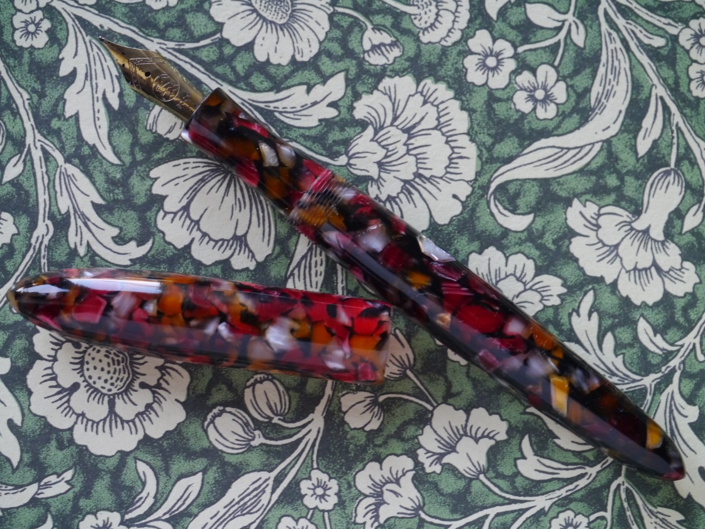 ed una invece in resina (red gold cracked ice) pennino Bock