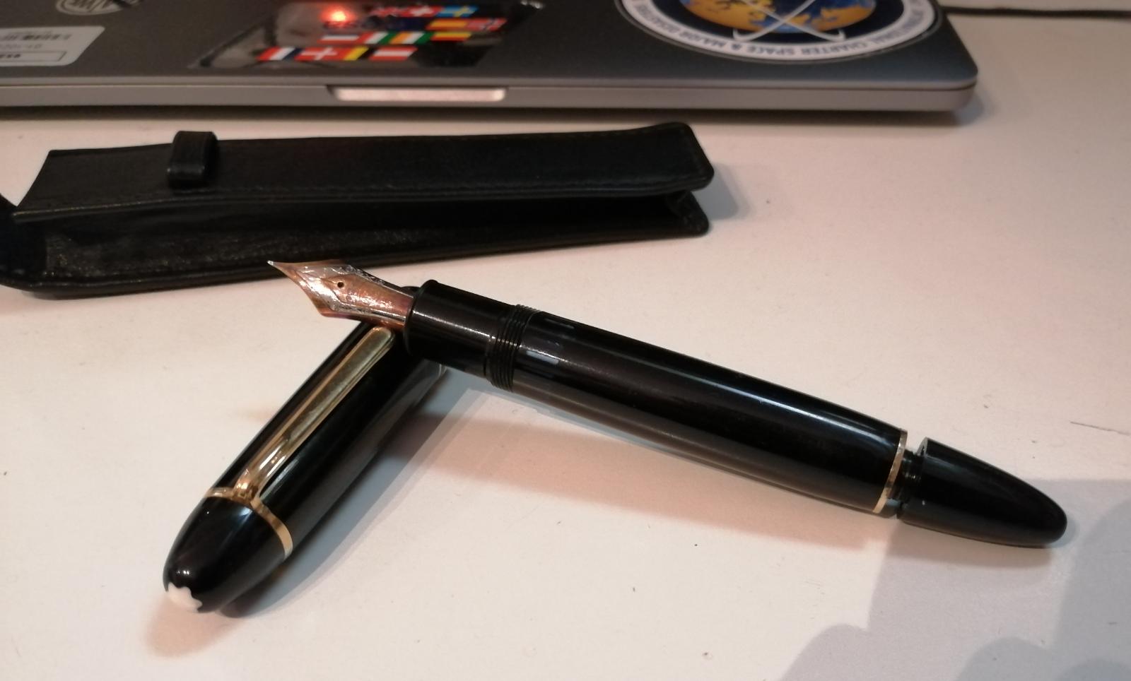 Forse e' ancora troppo annacquata dopo la pulizia. Se notate la foto comparativa delle 3 MB 149 ( rispettivamente da sinistra a destra abbiamo una 14c 2tone (M) anni 80, una 18c 3tone (EF) del 2019 ed appunto la 14c 3tone in questione....) il tratto del pennino dalla prima sulla sinistra sembra essere più' grande dell'ultima a destra!!! Eppure scrivendo si ha la sensazione che la più' anziana (14c 3tone) sembra sia quella che scrive piu' largo. Si accettano consigli.