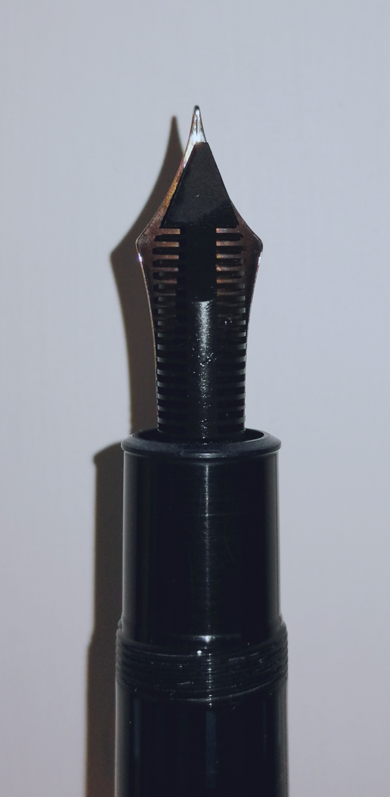 * intingendola con inchiostro Montblanc Irish Green scrive benissimo ed in maniera molto fluida. Il tratto pero' sembra un B...a vederla avrei detto un F