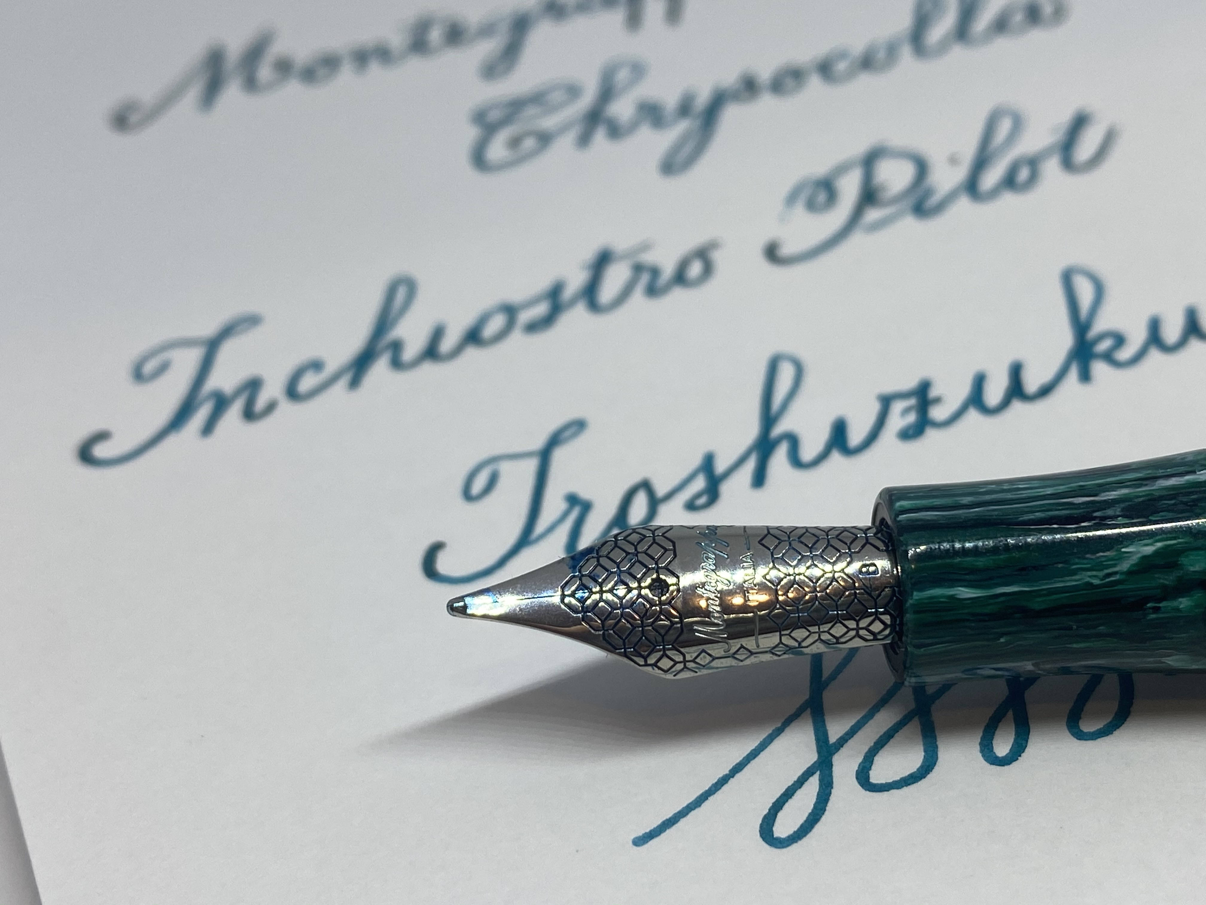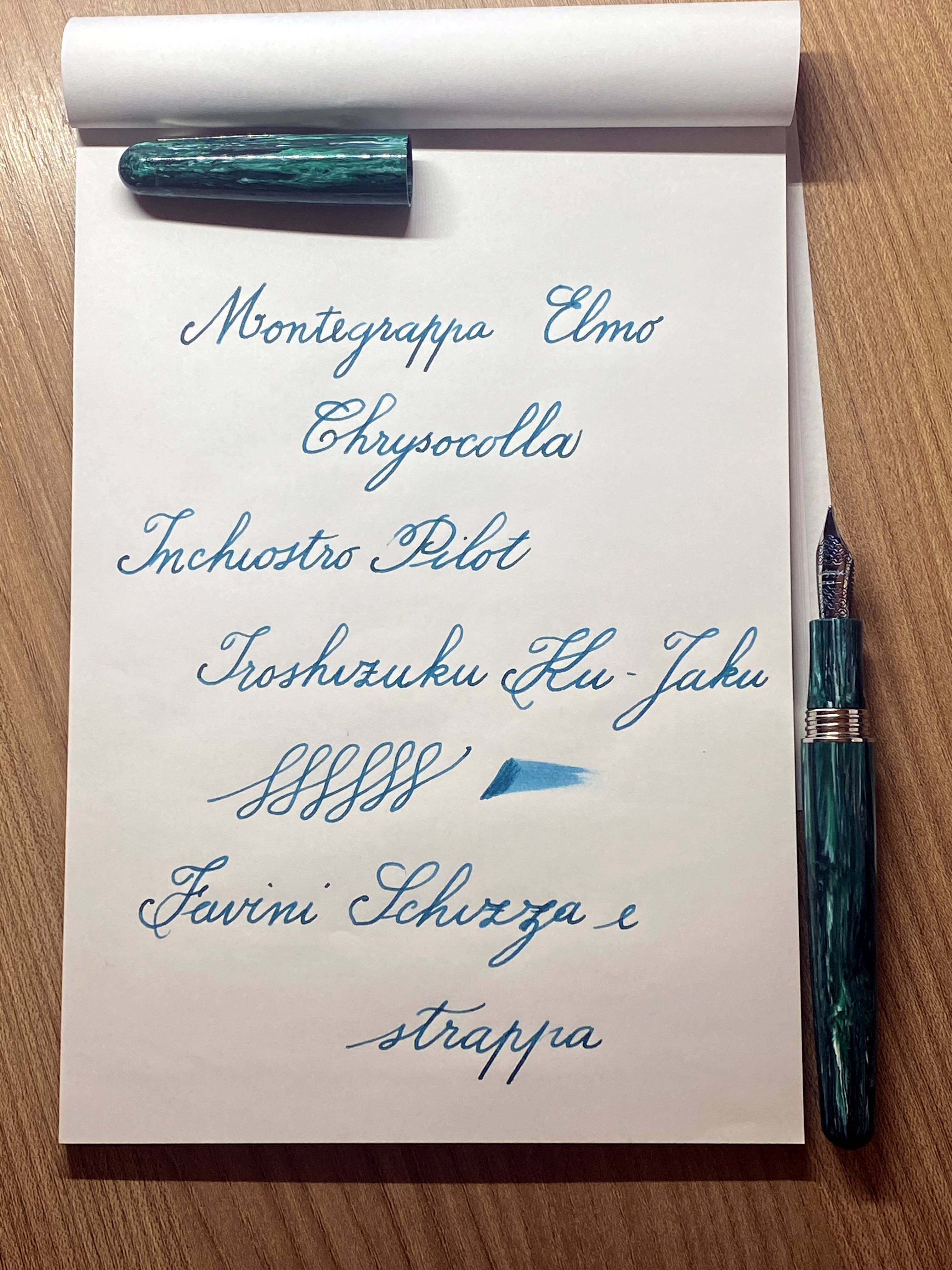 La Elmo Chrysocolla è una bella penna e, grazie al nuovo connubio con JoWo, anche ben funzionante, peccato per quello scalino tra fusto e sezione, sarebbe stata altrimenti quasi perfetta. Dico quasi perché c'è un altro piccolo difetto, ed è il prezzo, siamo sui 250€, un po’ tanti per una penna in resina, pennino in acciaio e sistema di caricamento a cartuccia/converter, ma sappiamo quali sono i listini di Montegrappa. Io me la son fatta regalare grazie ad una offerta irresistibile.
