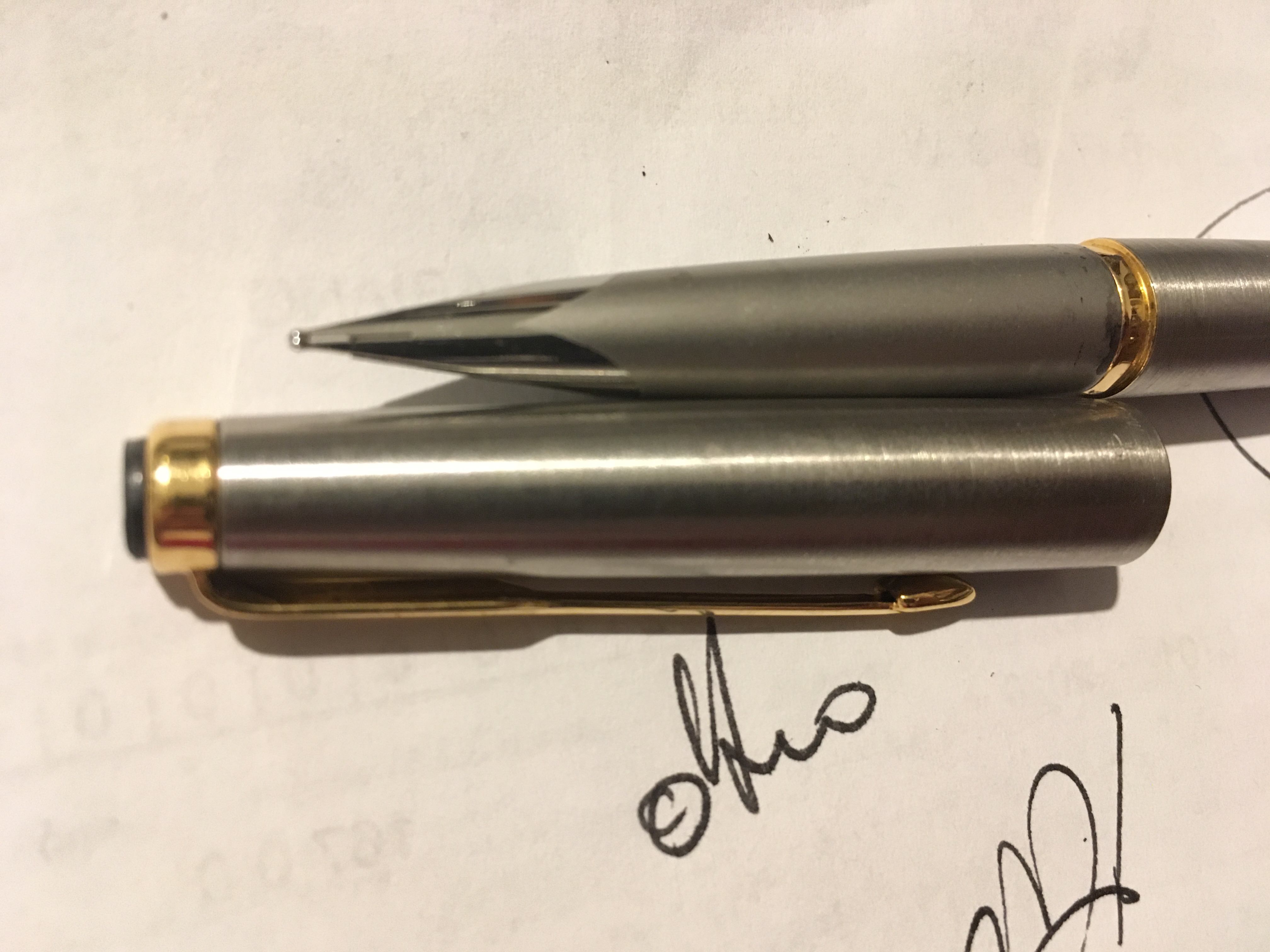Mi sono ritrovato fra le mani una Parker stilografica, credo anni ottanta, una fra le tante penne che mi hanno regalato negli anni dell'adolescenza... e non riesco in nessuno modo a farla funzionare... passa l'acqua ma niente inchiostro... e tra l'altro il pennino sembra solidale con il resto della penna... Ma voi ne sapete più di me. Vi allego foto. Suggerimenti per ripristinarla?