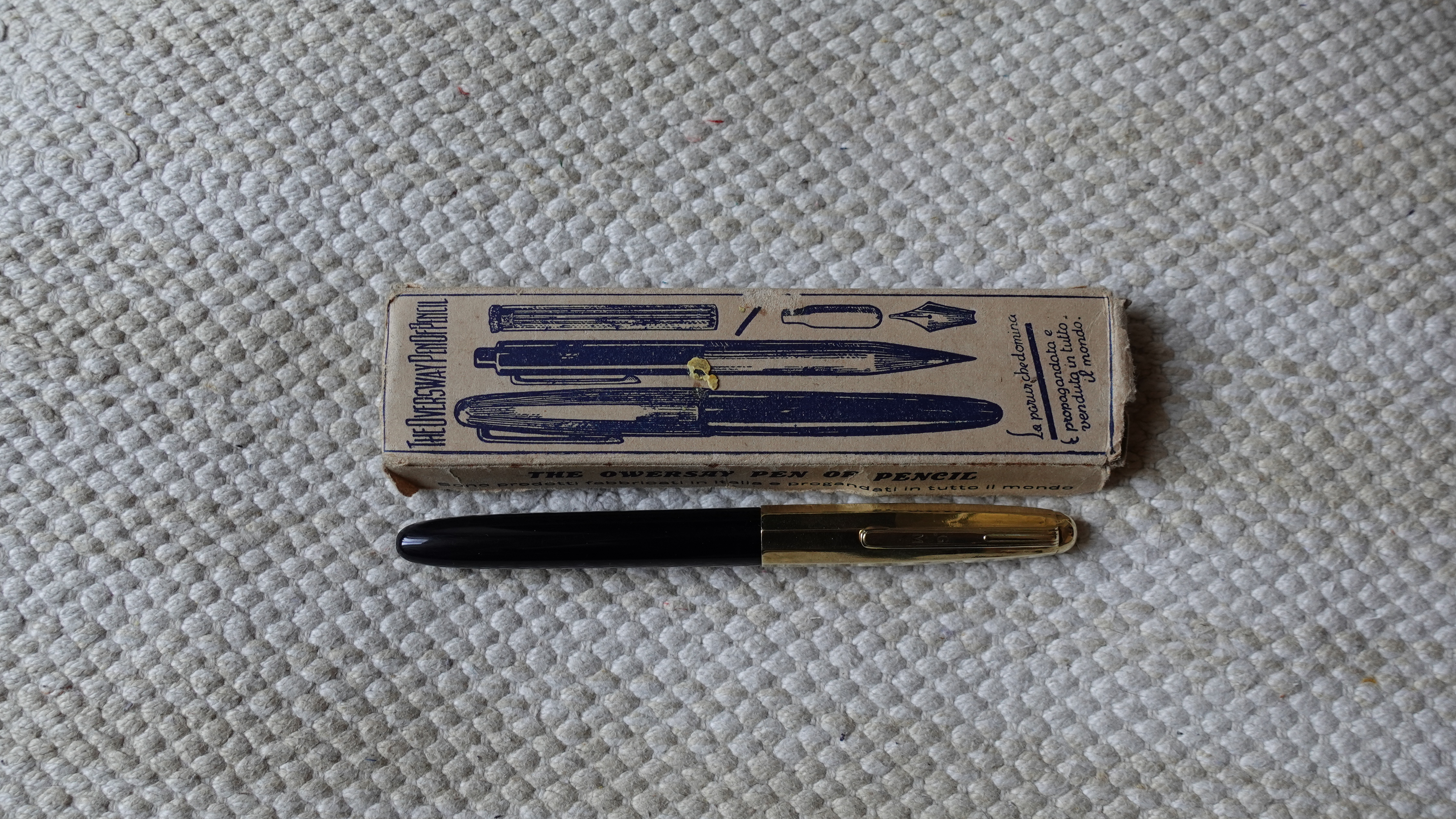 Certo che è una penna interessante, con caricamento a pompetta e tubino di sfiato. Certo un'altro dei tentativi delle manifatture di allora di adeguarsi ai canoni imposti dalla Parker 51